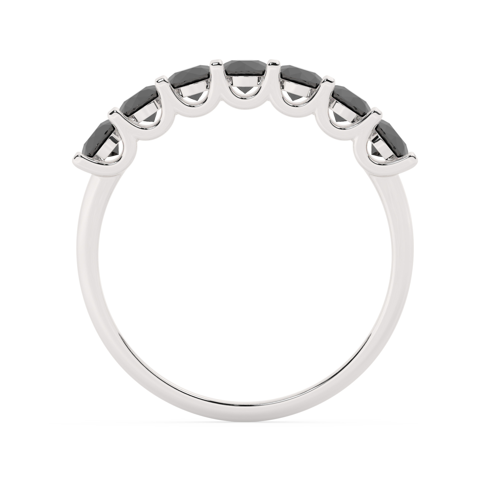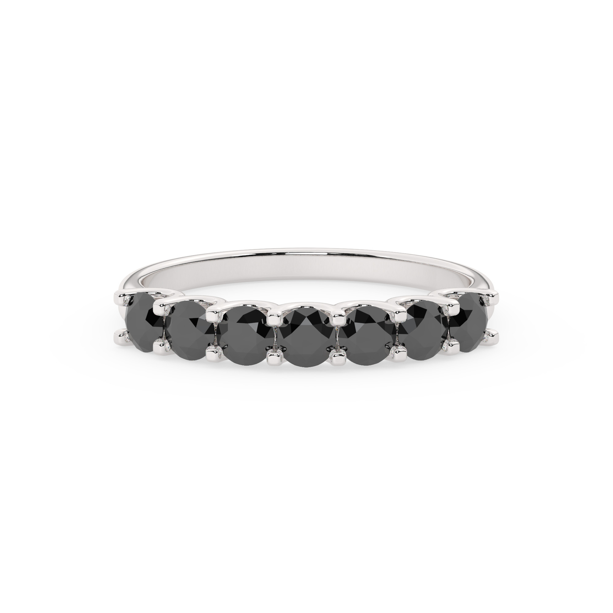 בטבעת משובצים 7 זירקונים שחורים בחיתוך עגול במשקל כולל של 0.70 קרט עם תעודה גמולוגית.