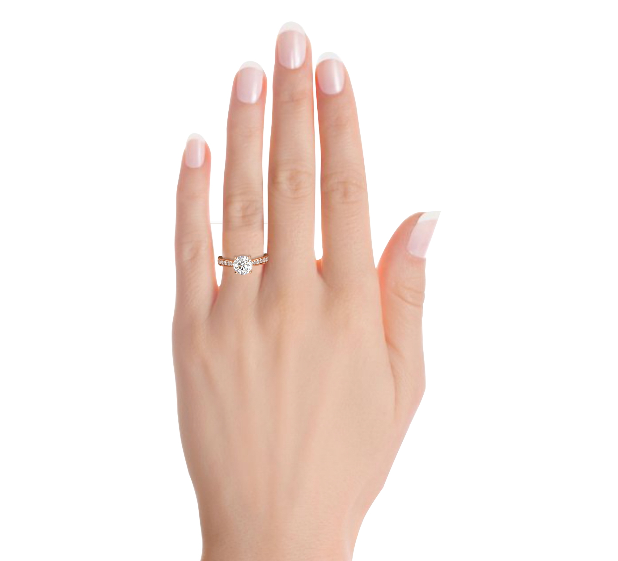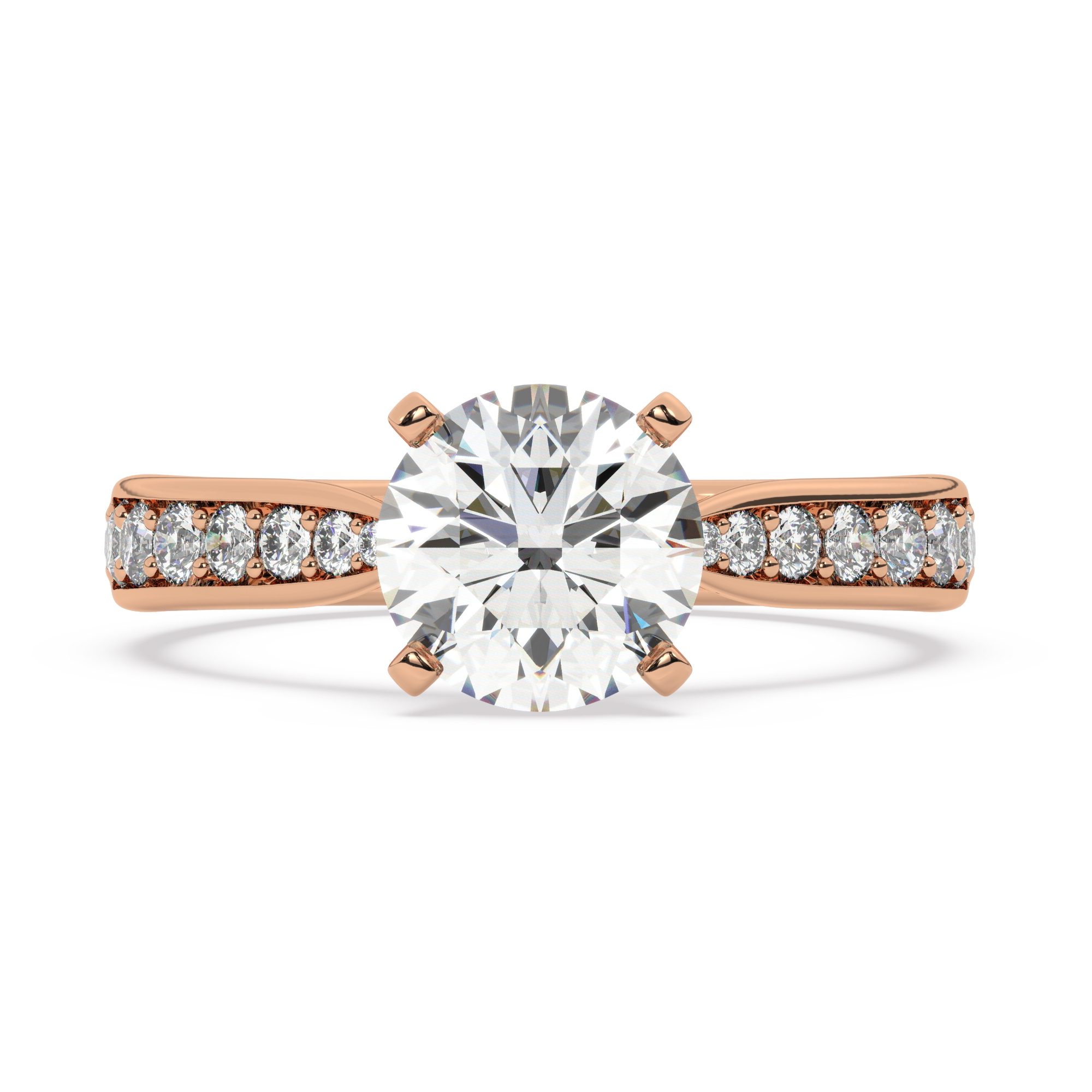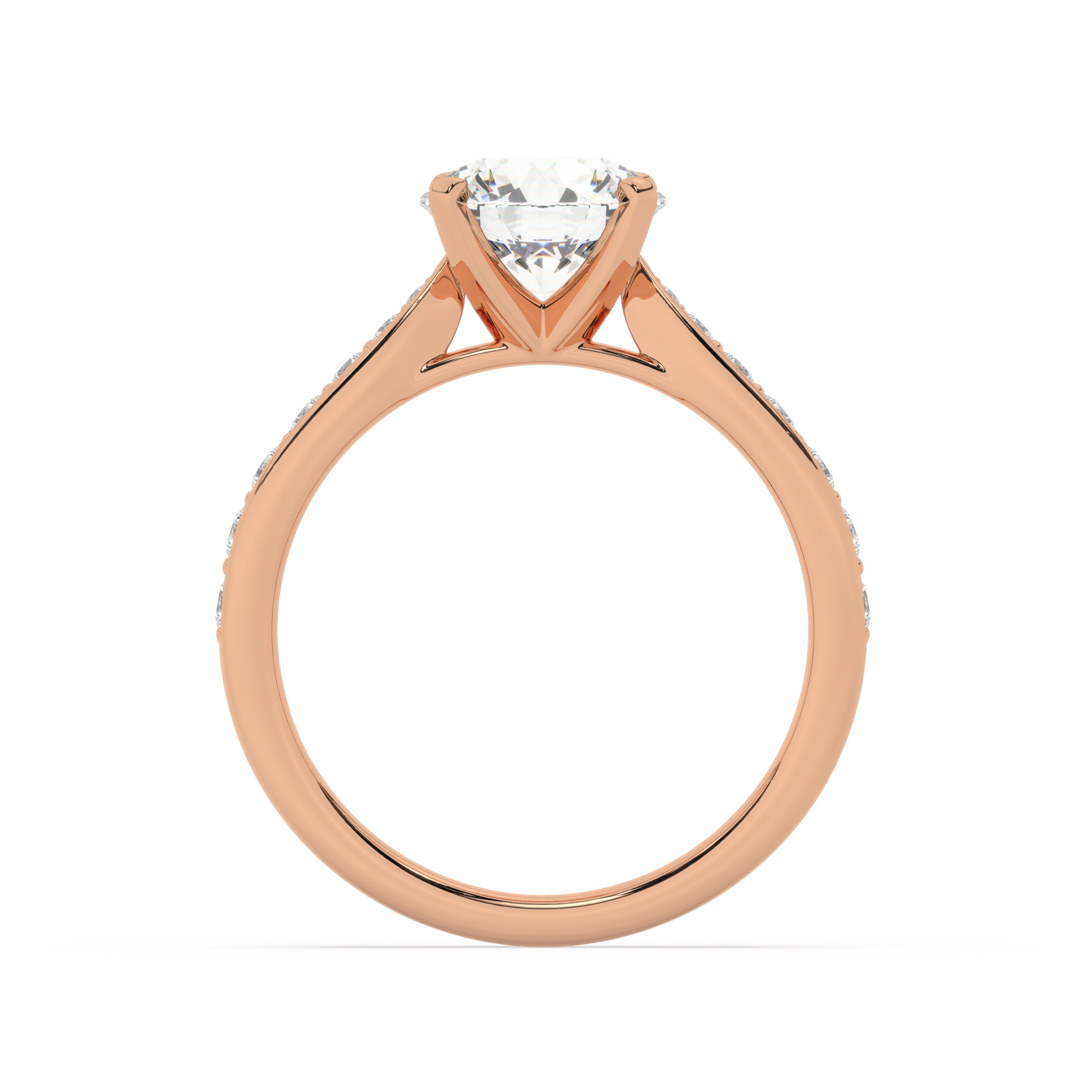 טבעת אירוסין סוליטר וזירקונים בצדדים דגם 50017 זהב אדום רוזגולד 14 קראט במרכז זירקוניה 0.75 קראט בחיתוך עגול מסביב ובצדדים זירקונים בחיתוך עגול