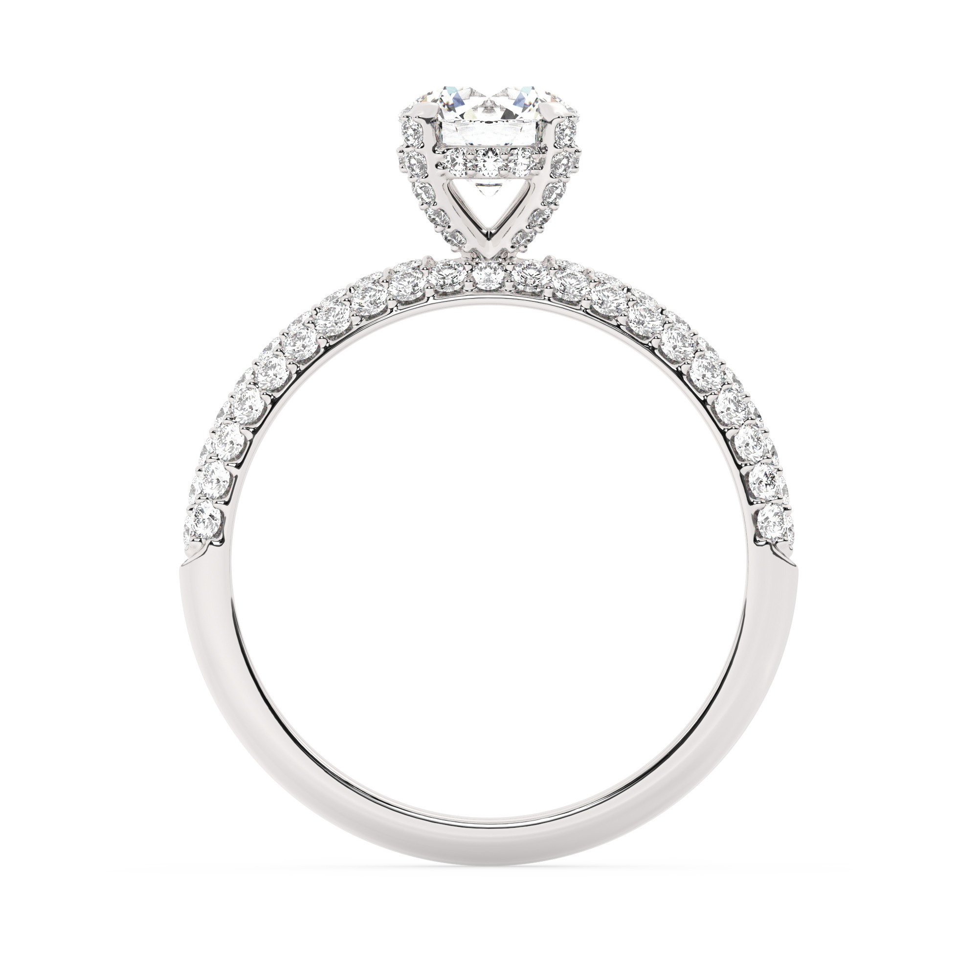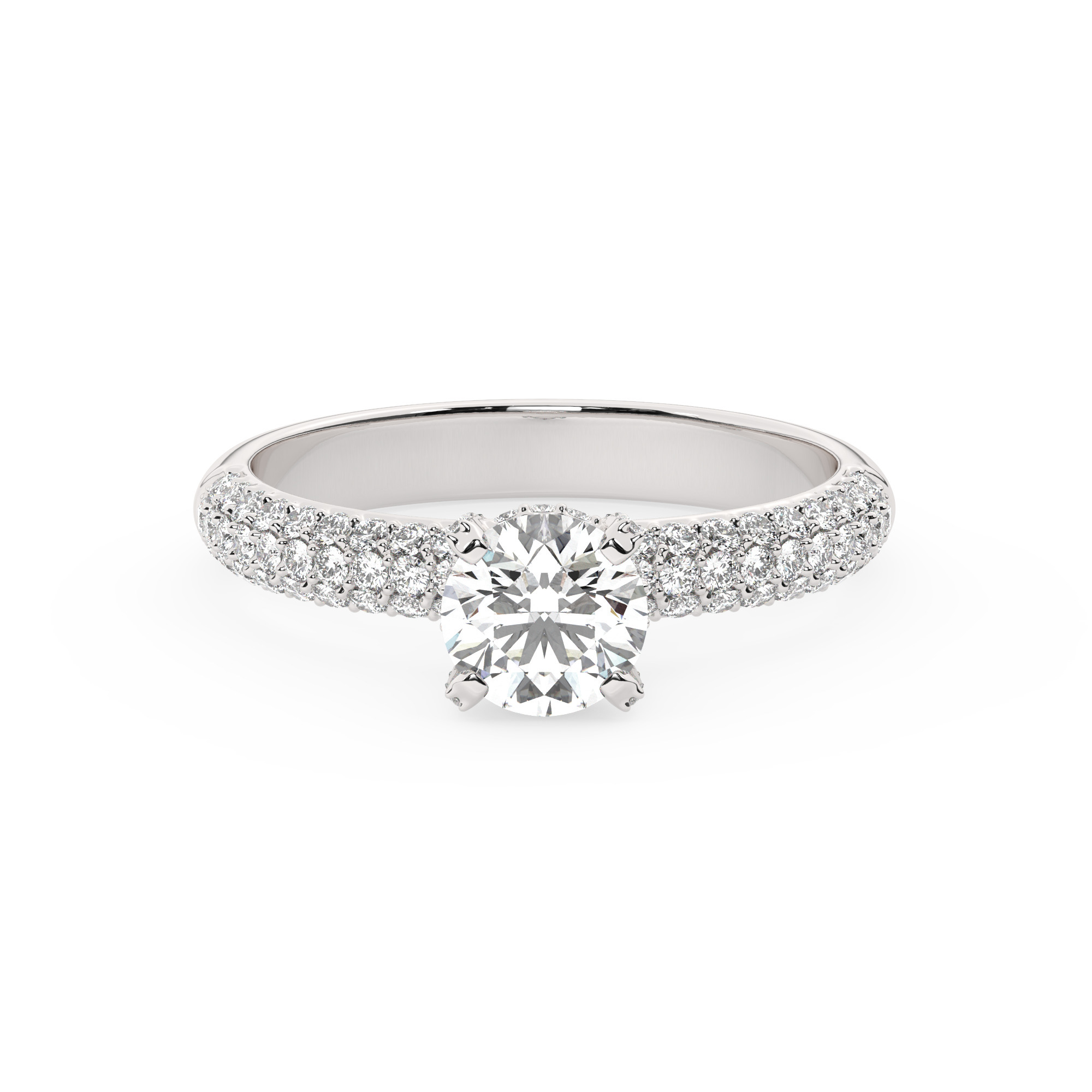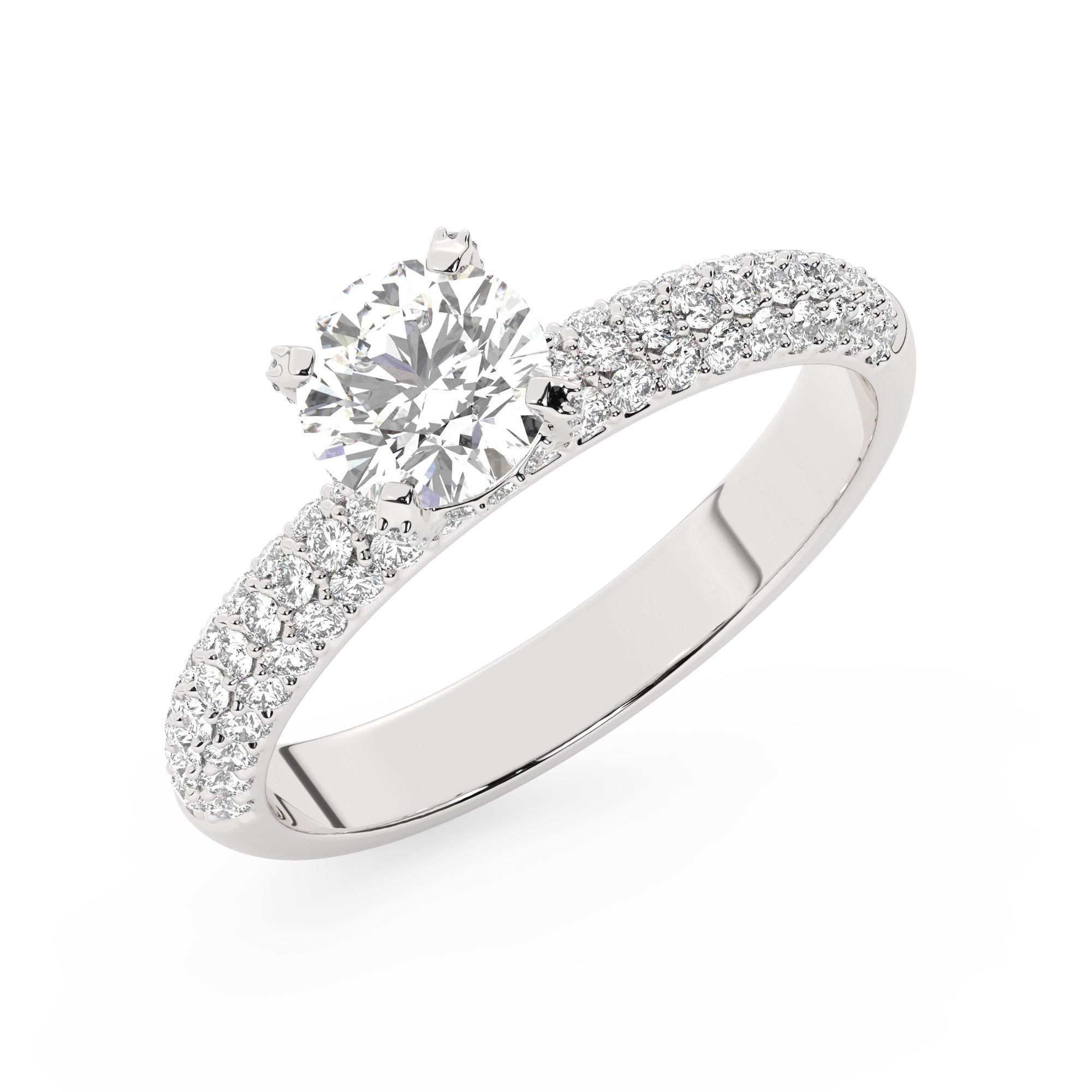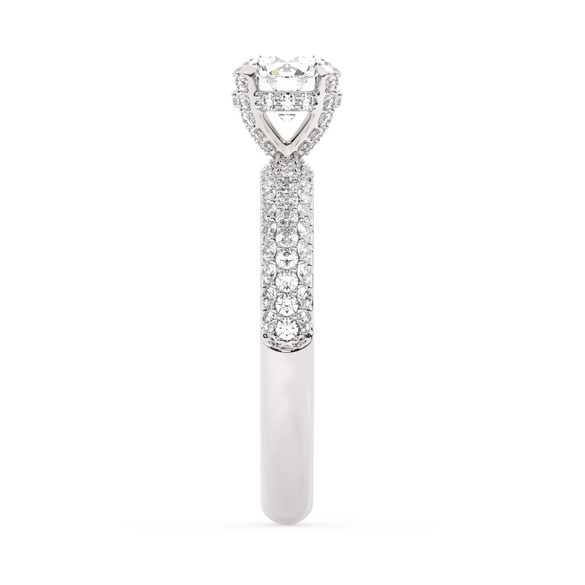 טבעת אירוסין סוליטר יוקרתית מזהב לבן 14 קראט, משובצת 101 אבני זירקוניה נוצצות. האבן המרכזית במשקל 0.75 קראט עם צבע D וניקיון VVS1, מוגשת עם תעודה גמולוגית רשמית.