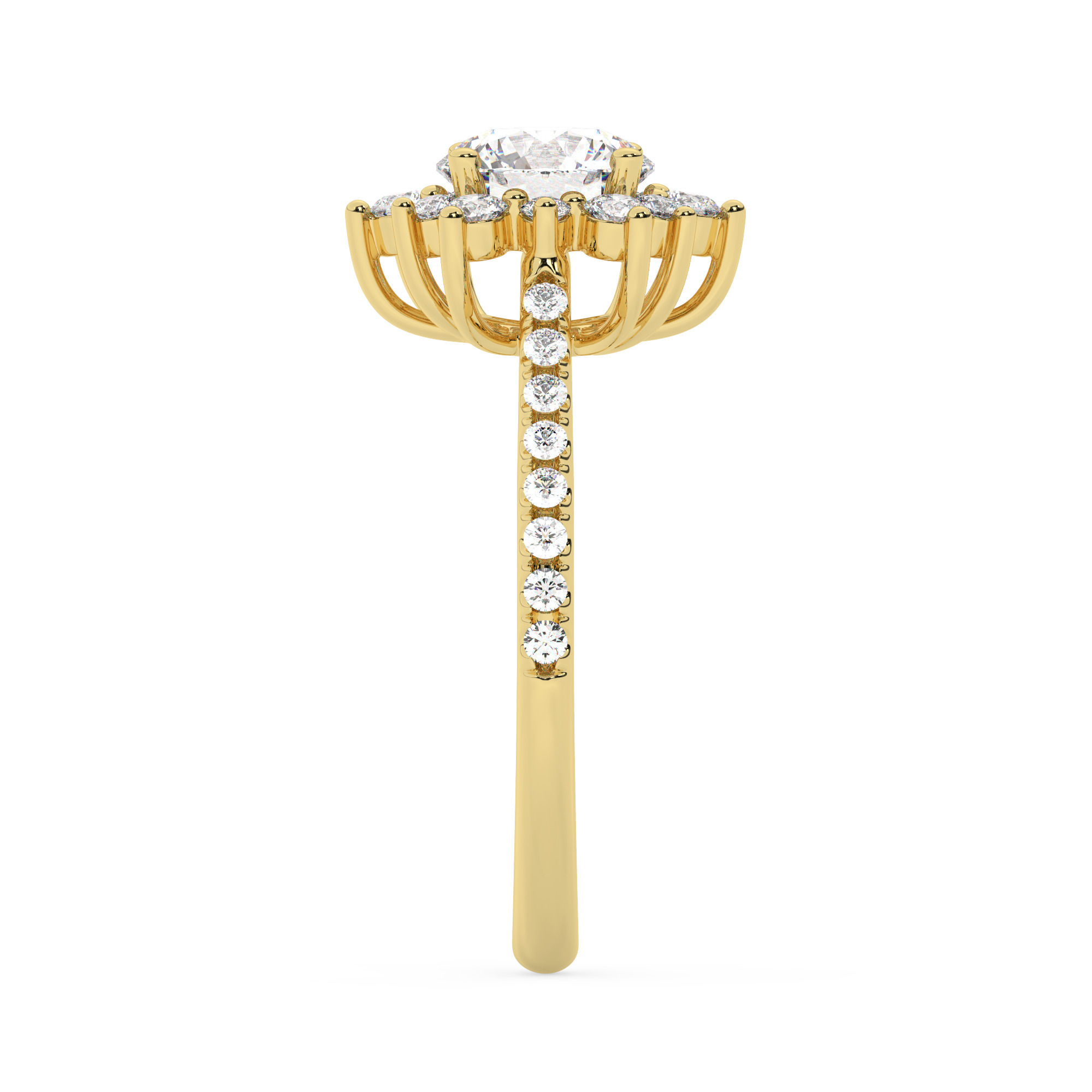 50% הנחהטבעת אירוסין היילו דגם ליטל זהב צהוב 14 קראט במרכז יהלום מעבדה 1 קראט מסביבו ובצדדים שורה של יהלומים עם תעודה גמולוגית אירופאית IGI טבעת הצעת נישואין