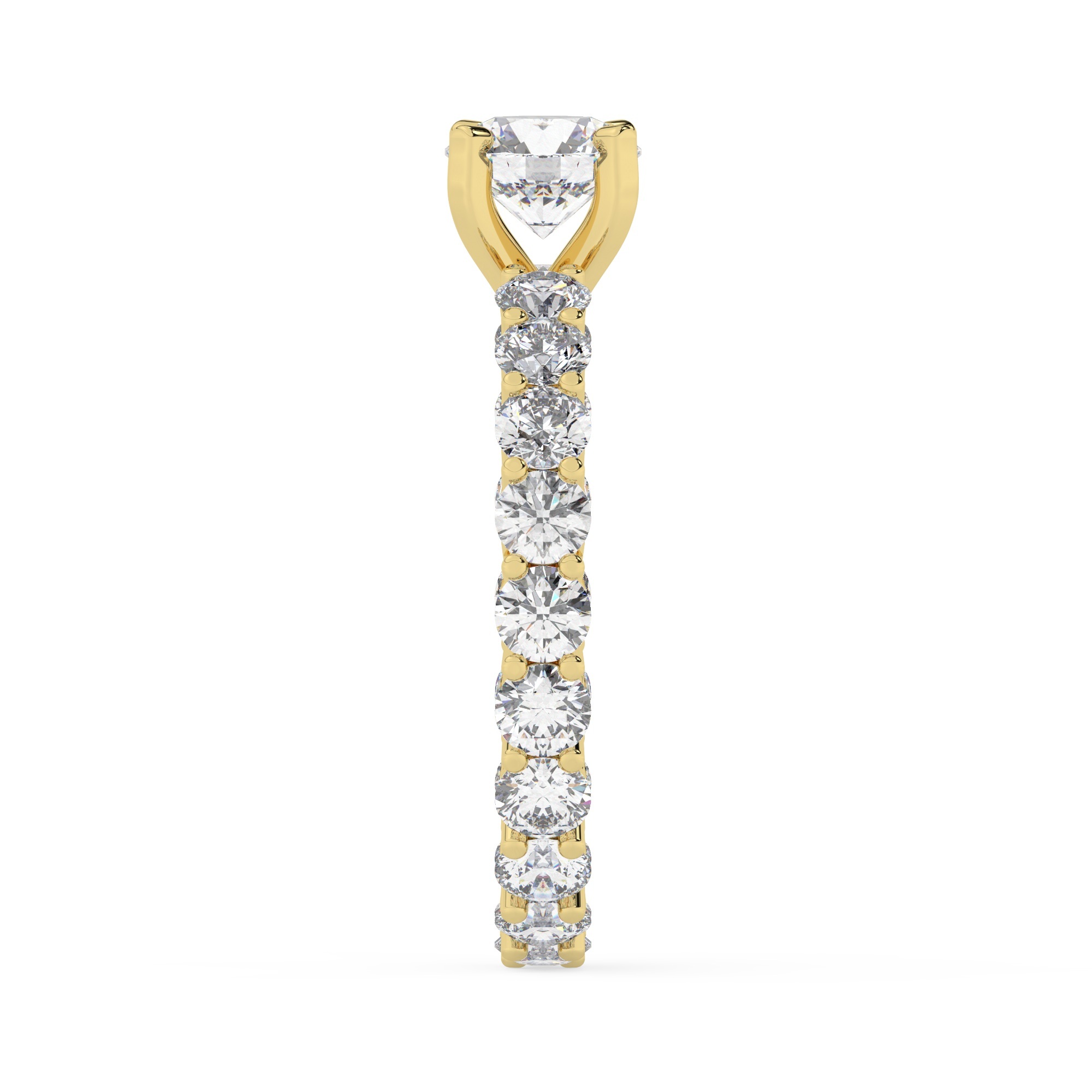 טבעת אירוסין סוליטר וזירקונים בצדדים איטרנטיני דגם 50044 זהב צהוב 14 קראט במרכז זירקוניה 0.75 קראט בחיתוך עגול מסביב ובצדדים זירקונים בחיתוך עגול