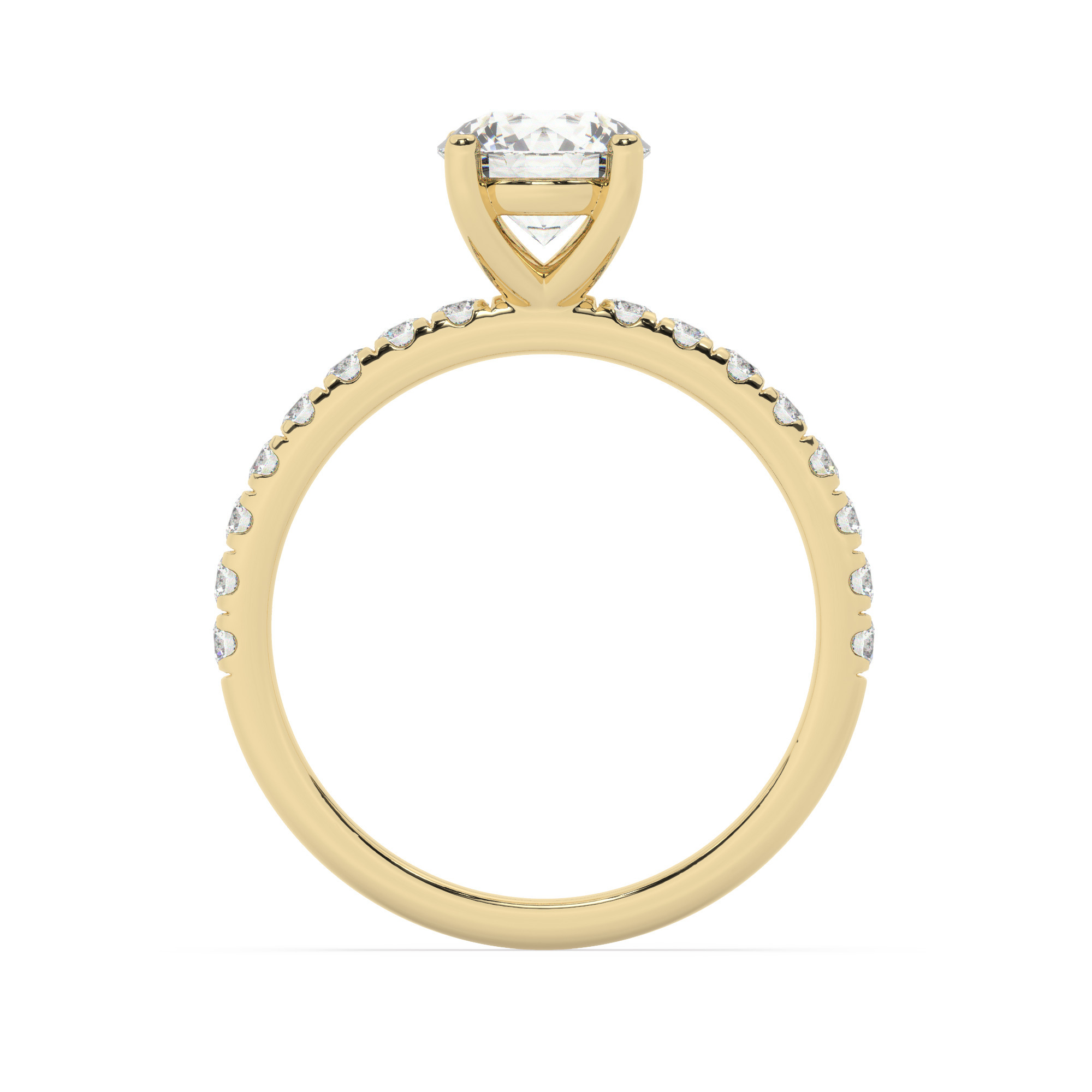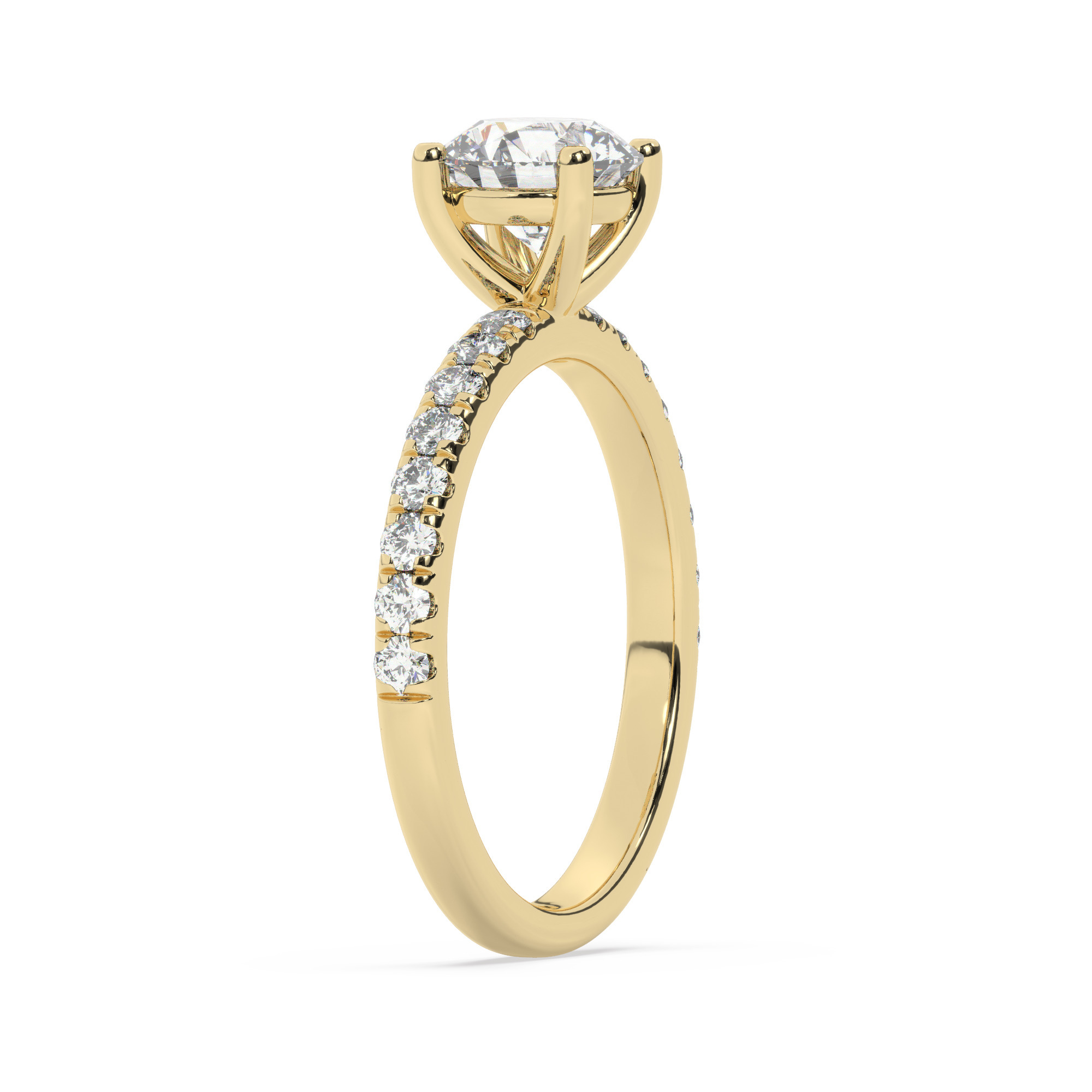 טבעת אירוסין סוליטר וזירקונים בצדדים דגם 50037 כסף מצופה זהב צהוב במרכז זירקוניה 0.75 קראט בחיתוך עגול מסביב ובצדדים זירקונים בחיתוך עגול