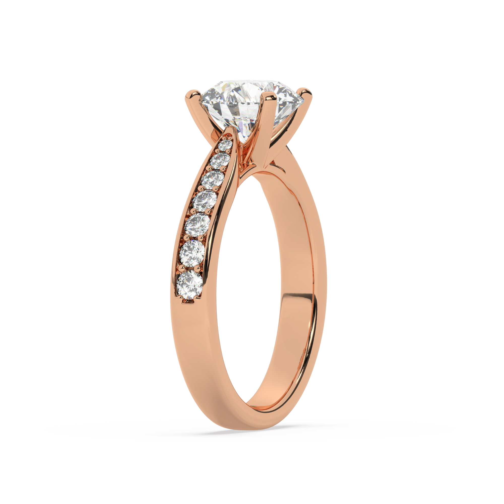 טבעת אירוסין סוליטר וזירקונים בצדדים דגם 50017 זהב אדום רוזגולד 14 קראט במרכז זירקוניה 1 קראט בחיתוך עגול מסביב ובצדדים זירקונים בחיתוך עגול