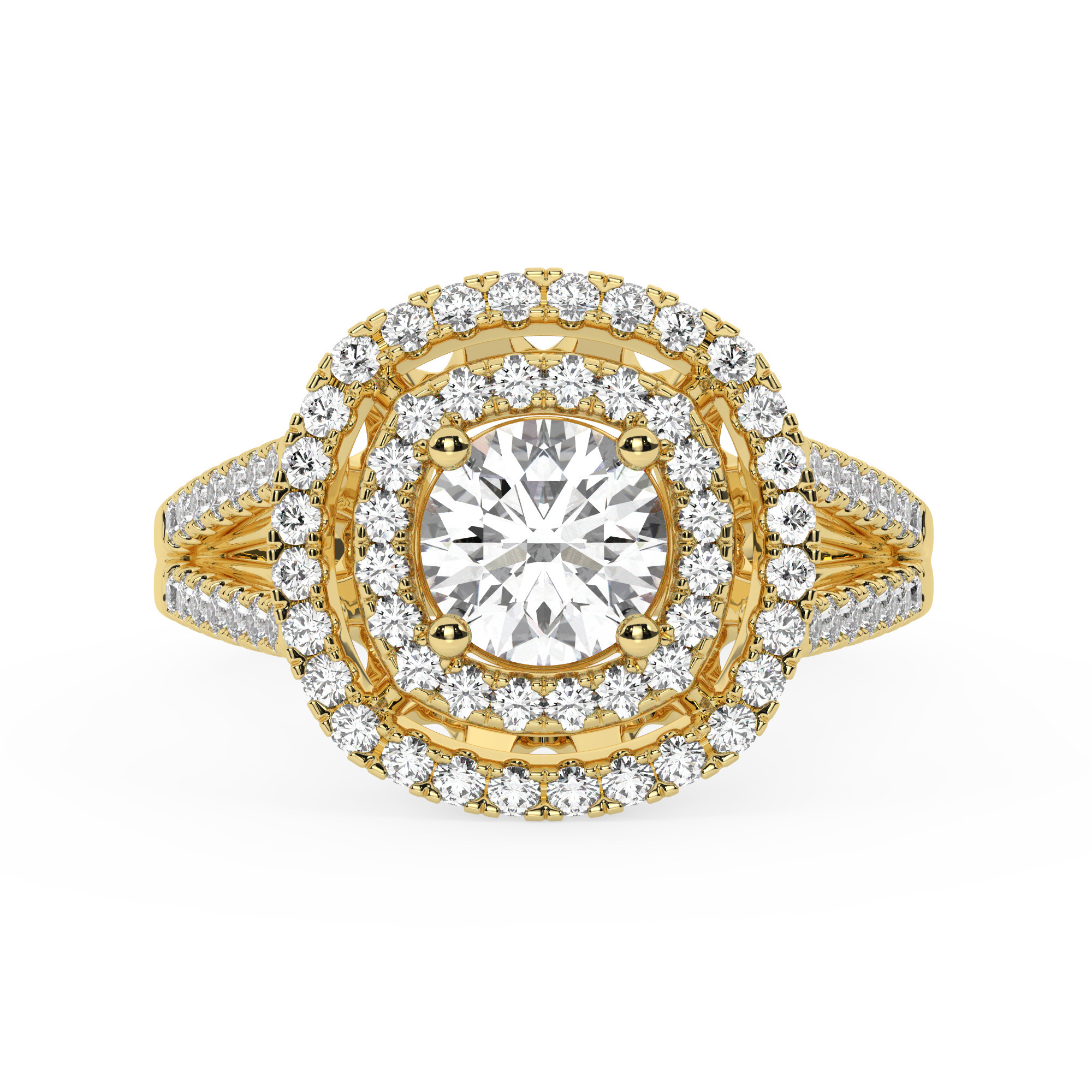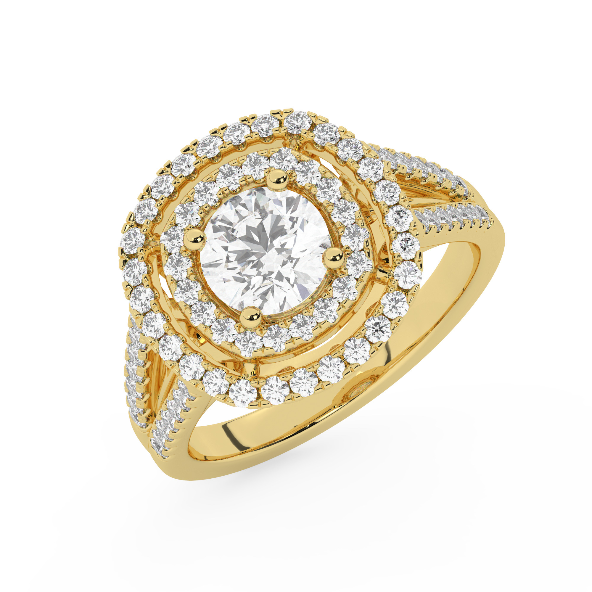 טבעת אירוסין היילו דגם 50025 זהב צהוב 14 קראט במרכז זירקוניה 1 קראט בחיתוך עגול מסביב ובצדדים זירקונים בחיתוך עגול