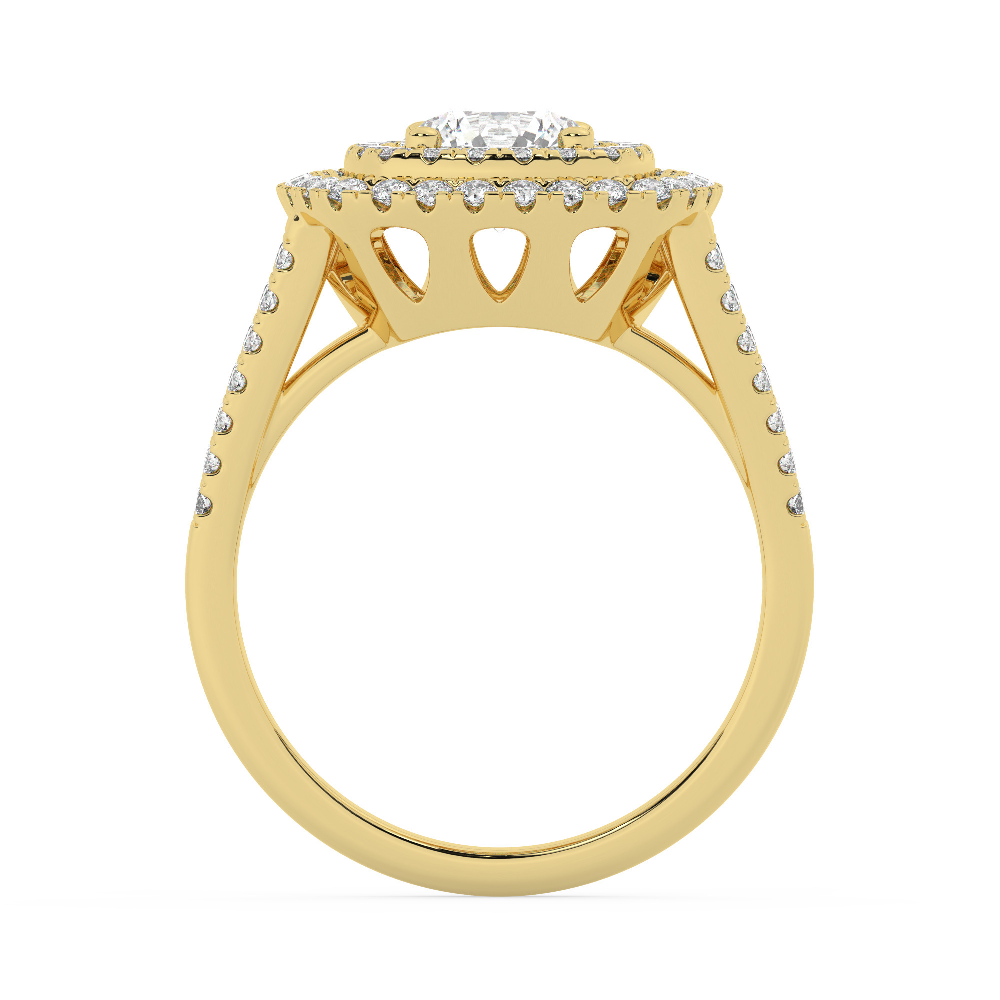 טבעת אירוסין היילו זירקונים מזהב צהוב 14 קראט