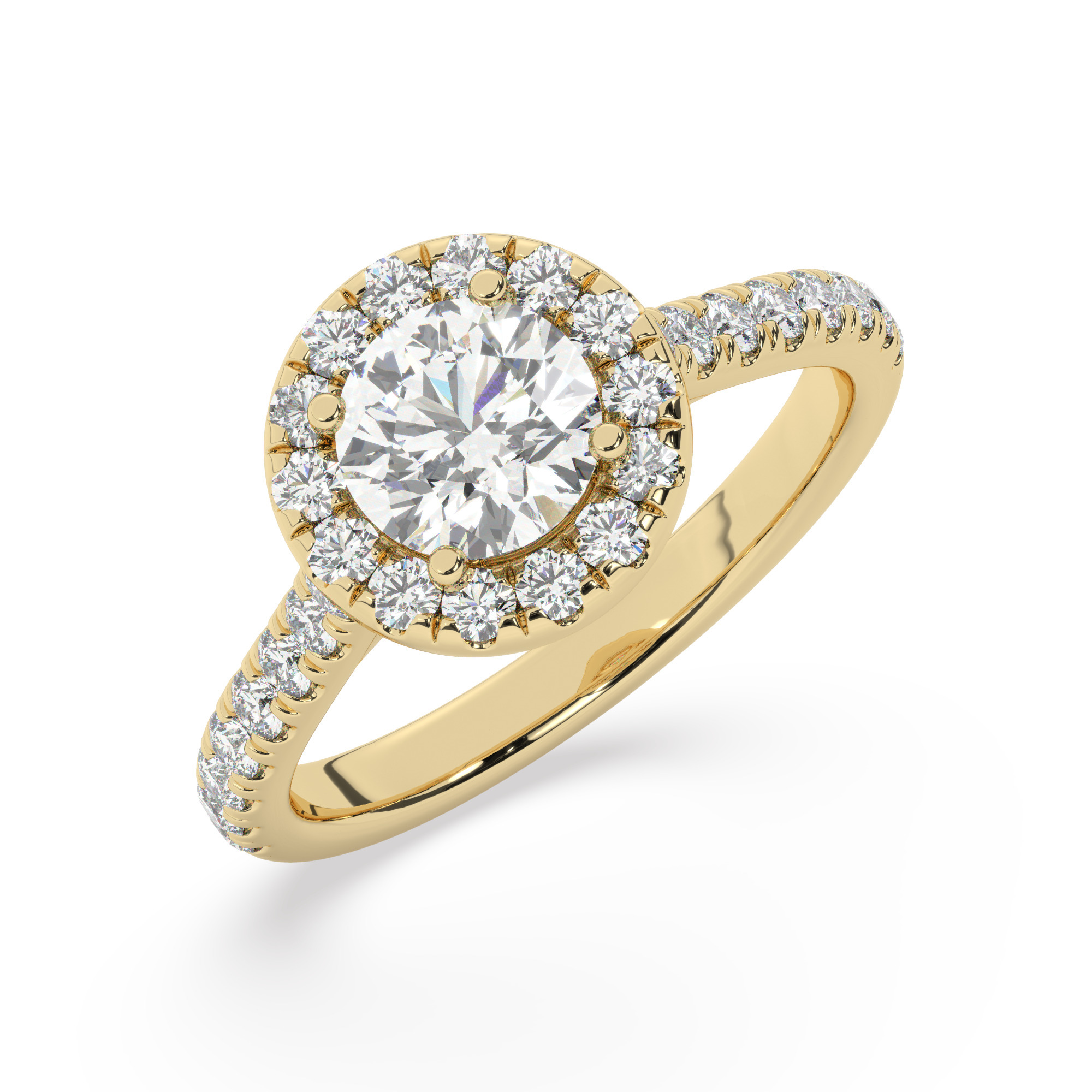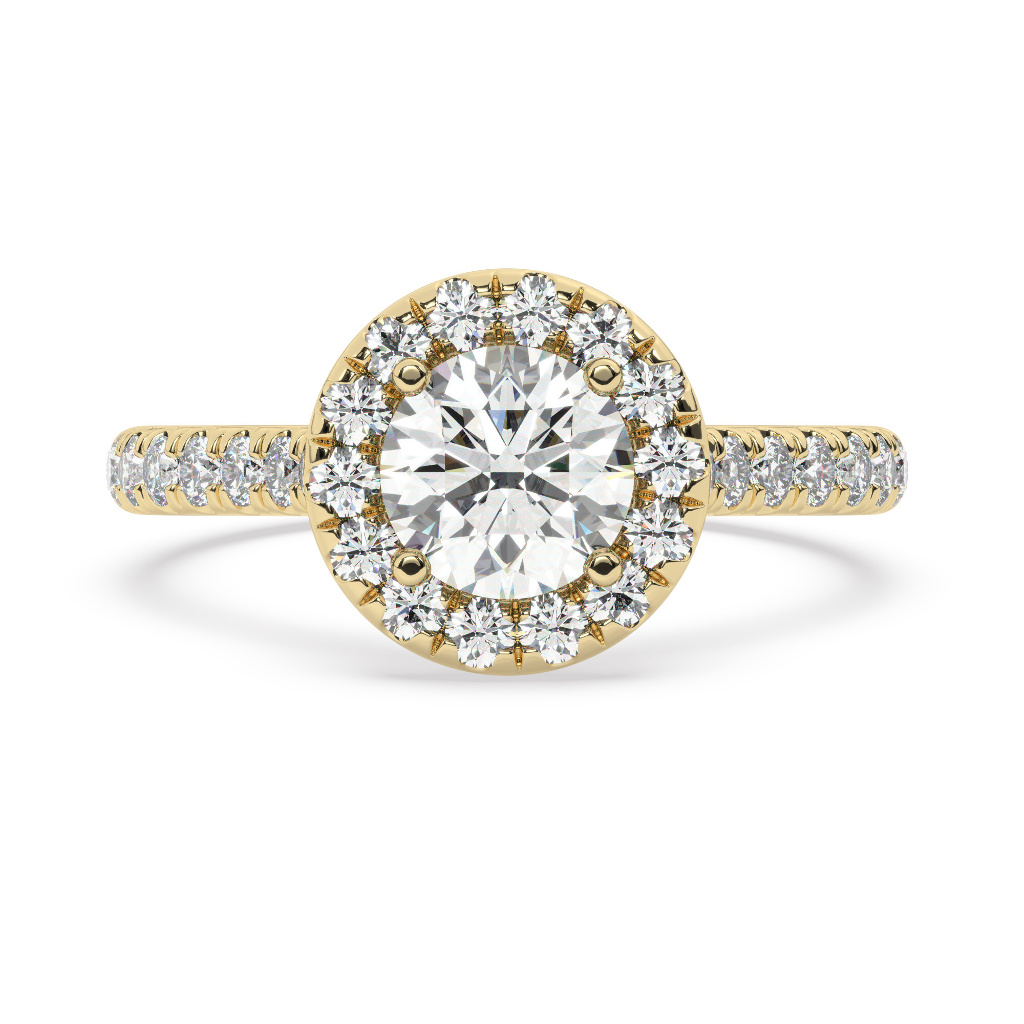 טבעת אירוסין היילו דגם 50026 זהב צהוב 14 קראט במרכז זירקוניה 1 קראט בחיתוך עגול מסביב ובצדדים זירקונים בחיתוך עגול