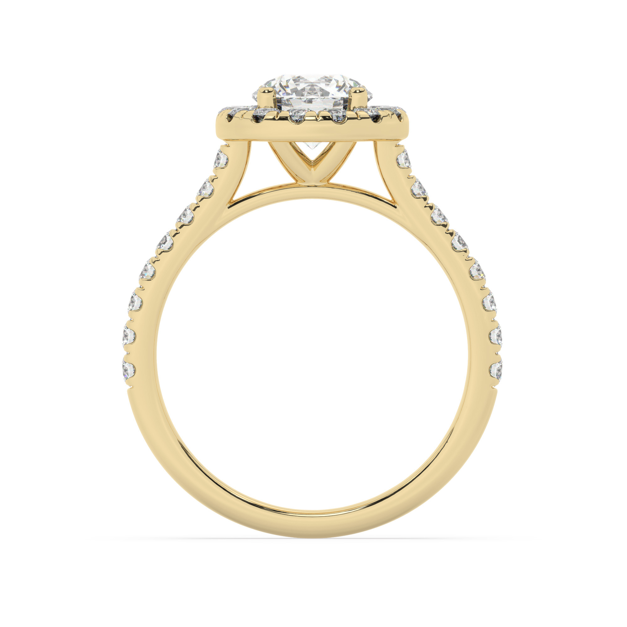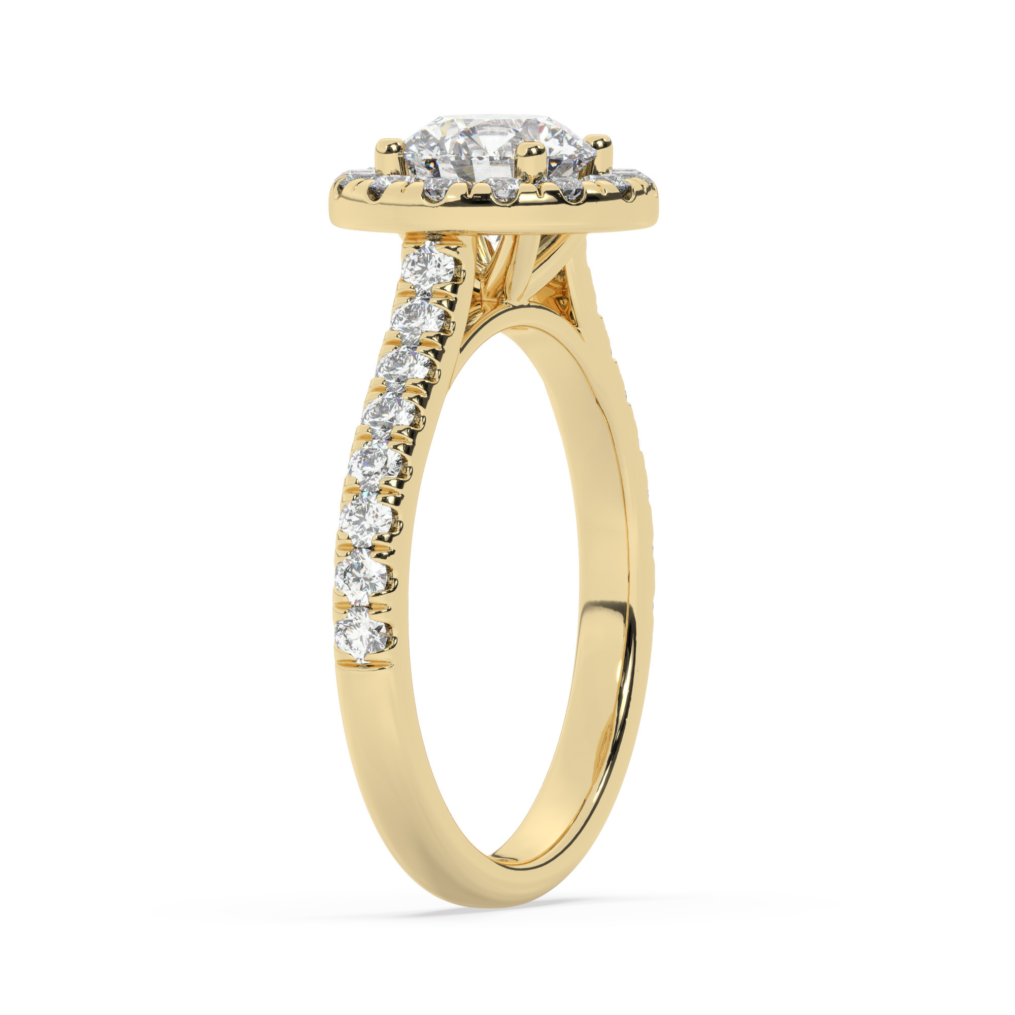 50% הנחהטבעת אירוסין היילו דגם ליטל זהב צהוב 14 קראט במרכז יהלום מעבדה 1 קראט מסביבו ובצדדים שורה של יהלומים עם תעודה גמולוגית אירופאית IGI טבעת הצעת נישואין