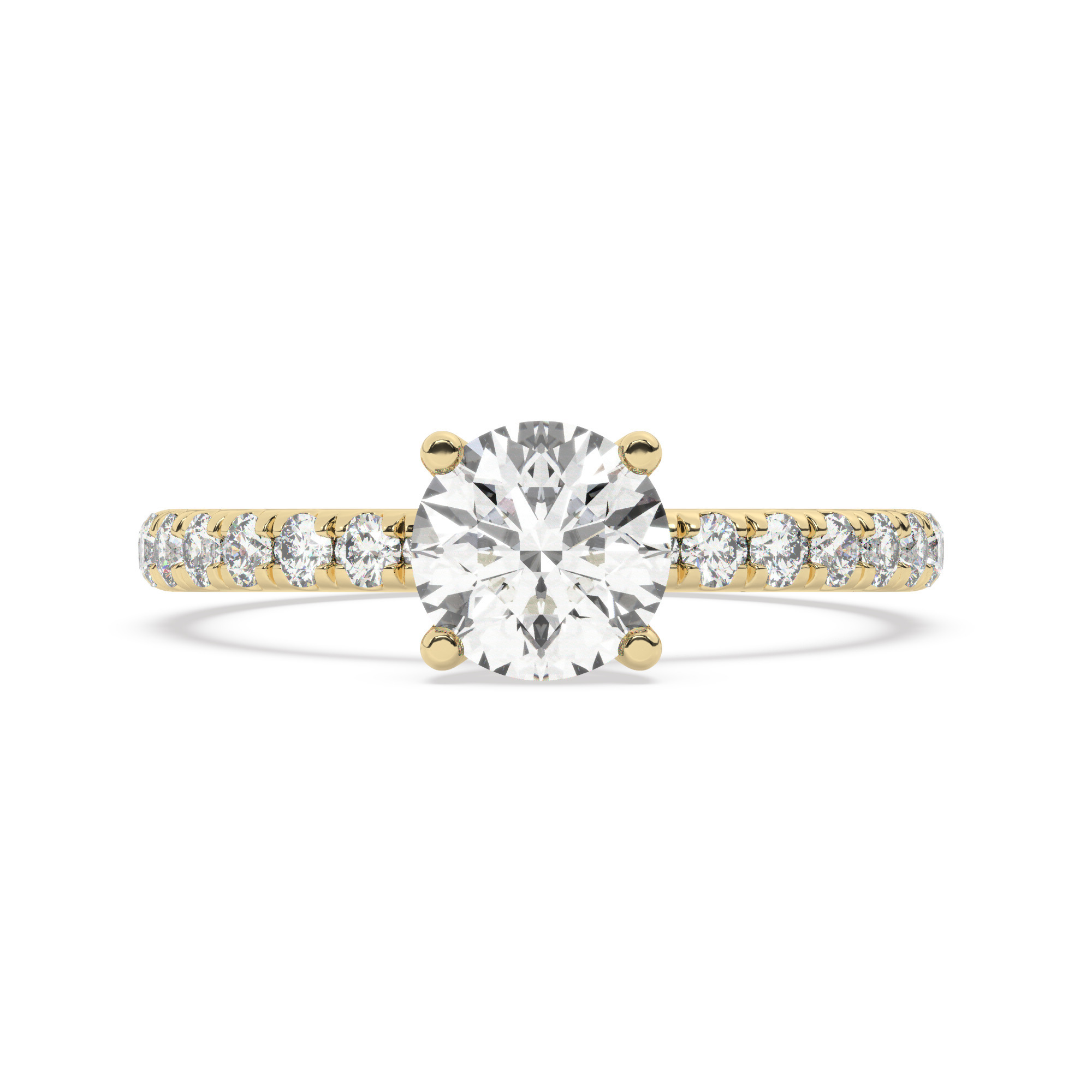 טבעת אירוסין סוליטר וזירקונים בצדדים דגם 50037 זהב צהוב 14 קראט במרכז זירקוניה 1 קראט בחיתוך עגול מסביב ובצדדים זירקונים בחיתוך עגול