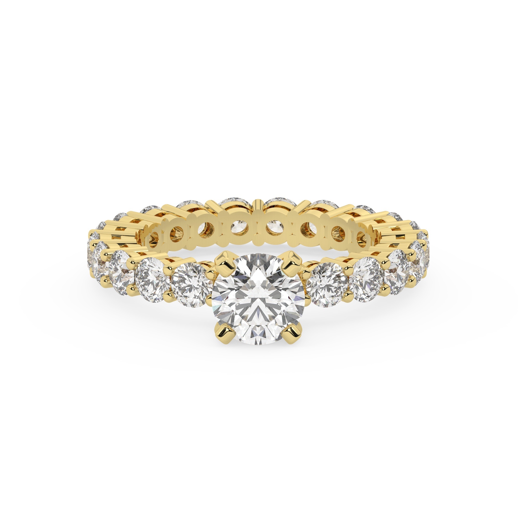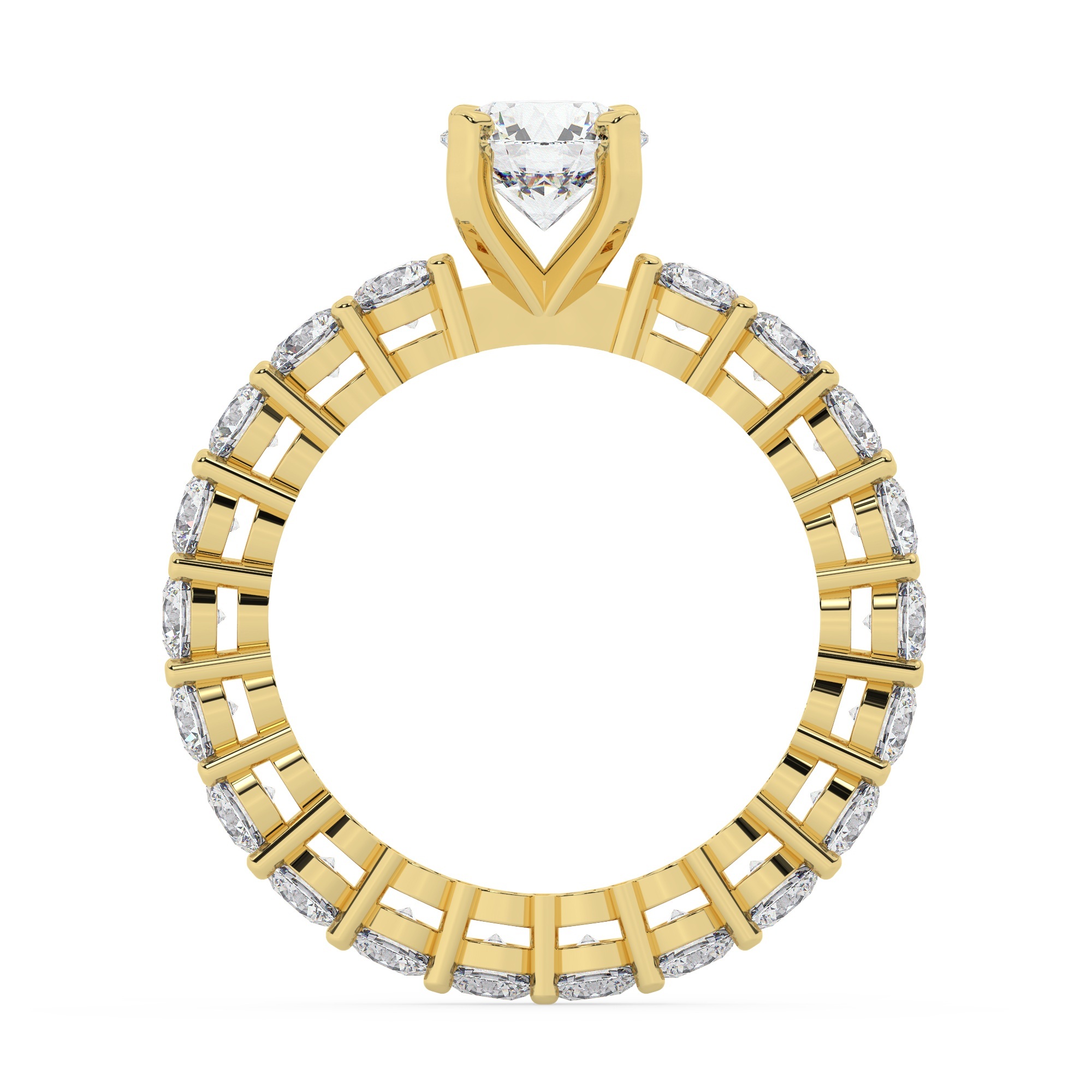 טבעת אירוסין סוליטר וזירקונים בצדדים איטרנטיני דגם 50044 זהב צהוב 14 קראט במרכז זירקוניה 1 קראט בחיתוך עגול מסביב ובצדדים זירקונים בחיתוך עגול