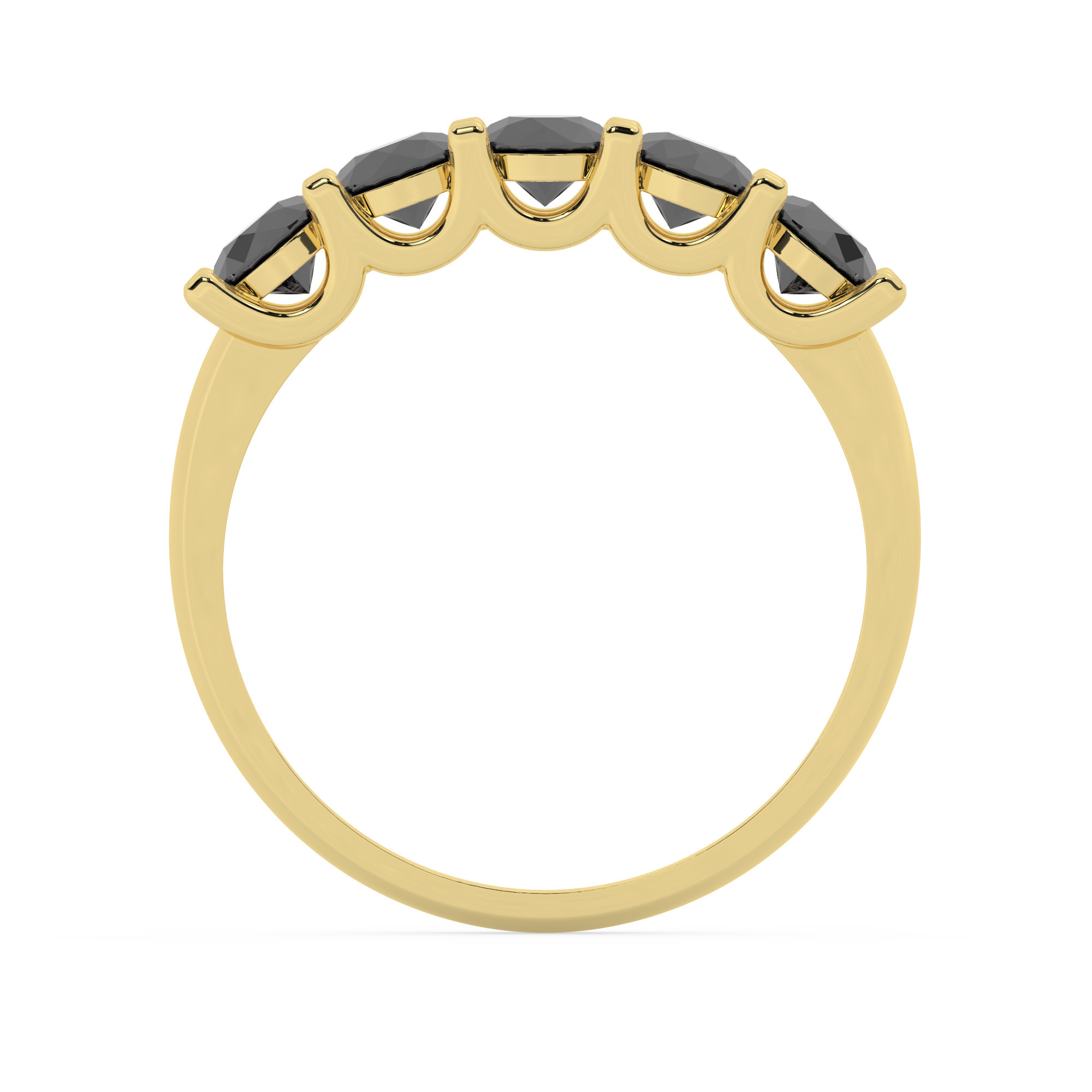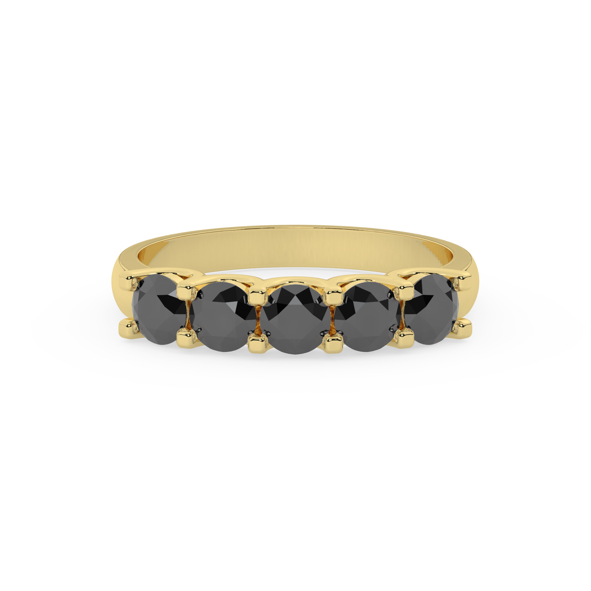 בטבעת משובצים 5 זירקונים שחורים בחיתוך עגול במשקל כולל של 1.08 קרט עם תעודה גמולוגית.