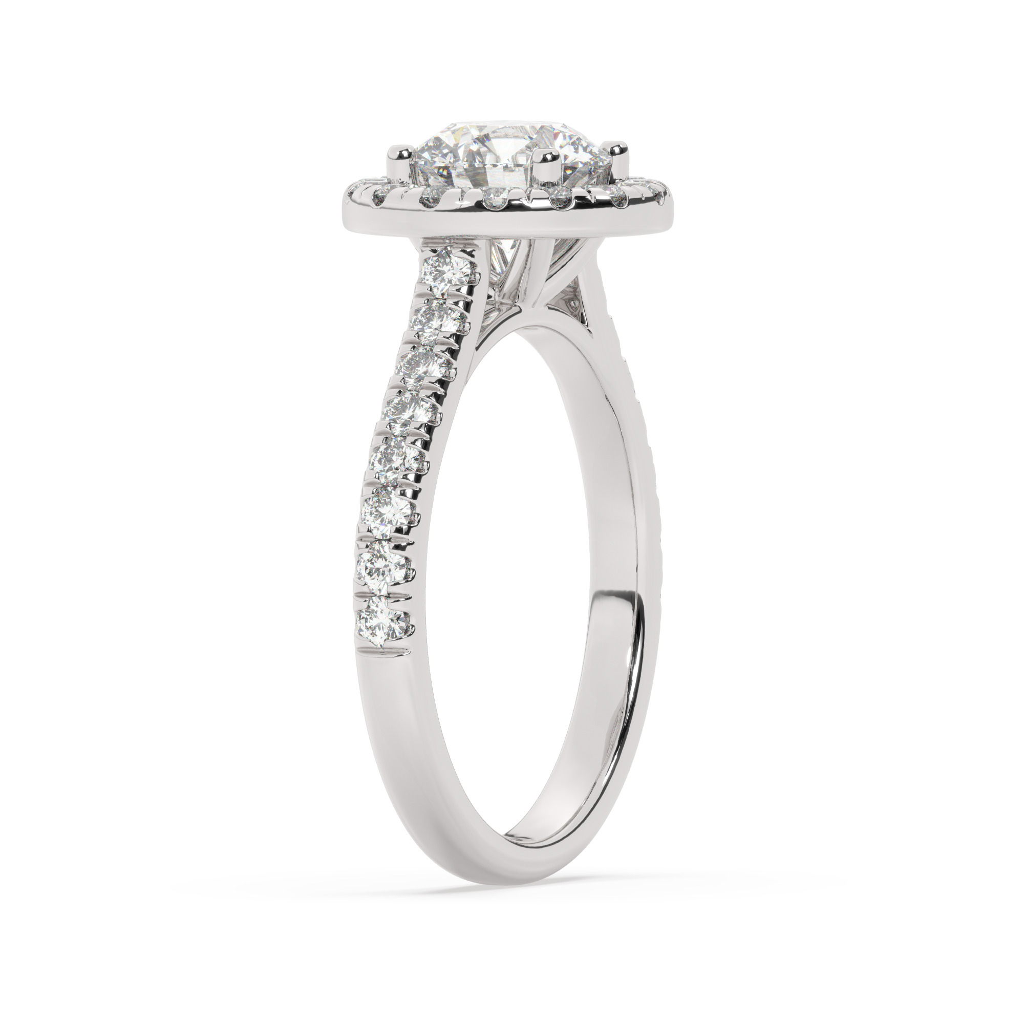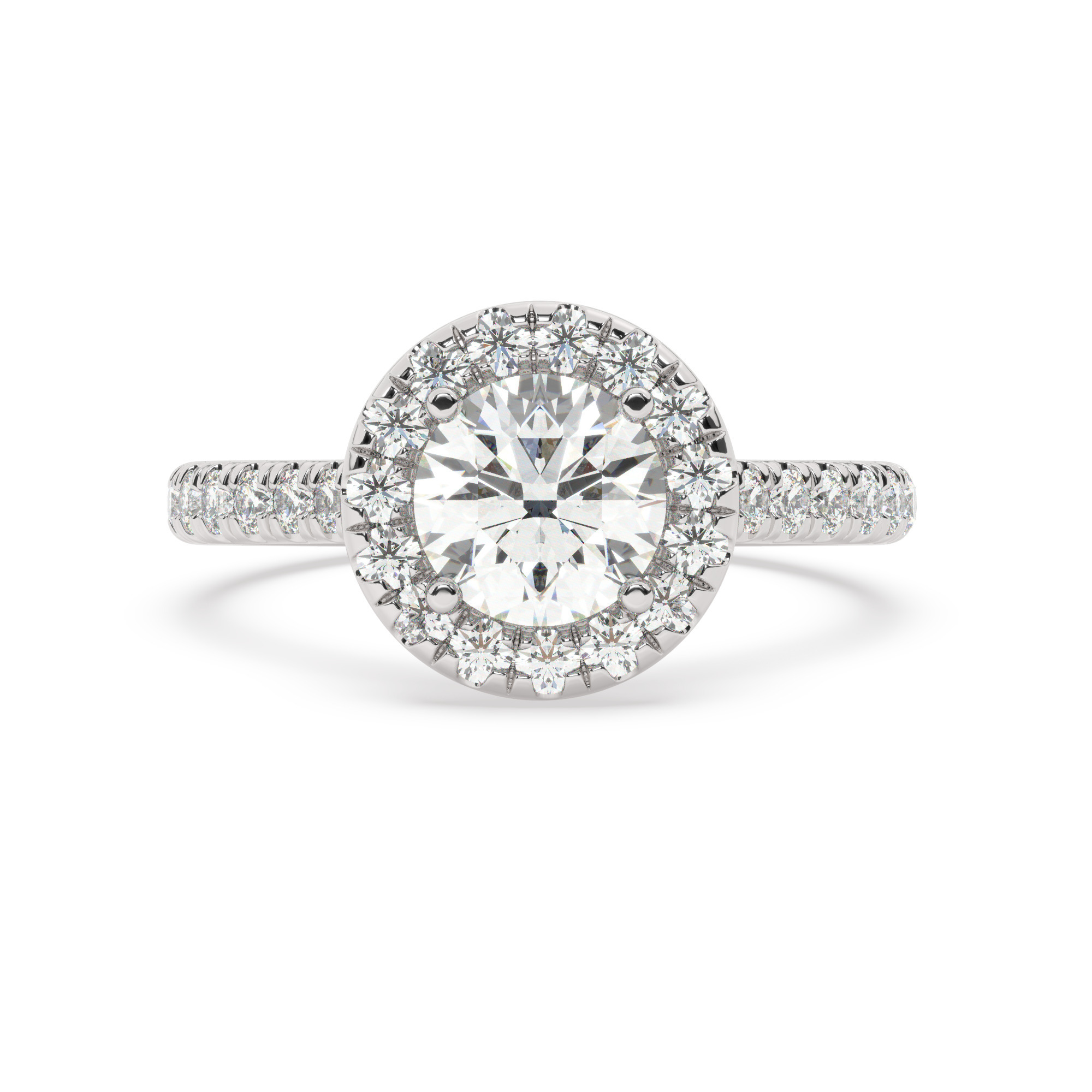 טבעת אירוסין היילו דגם 50026 זהב לבן 14 קראט במרכז זירקוניה 1.50 קראט בחיתוך עגול מסביב ובצדדים זירקונים בחיתוך עגול
