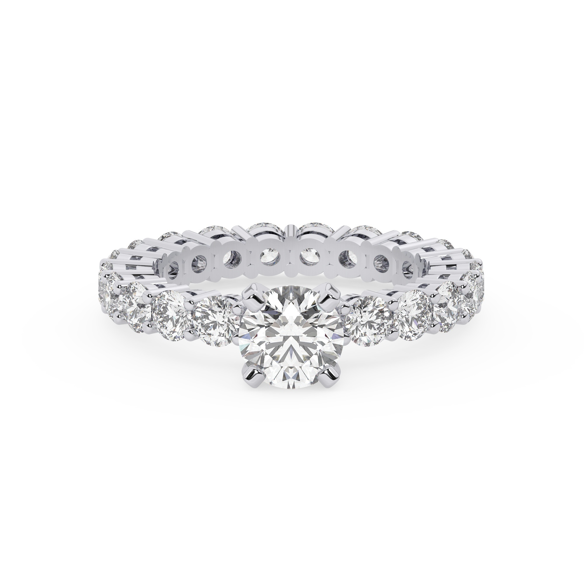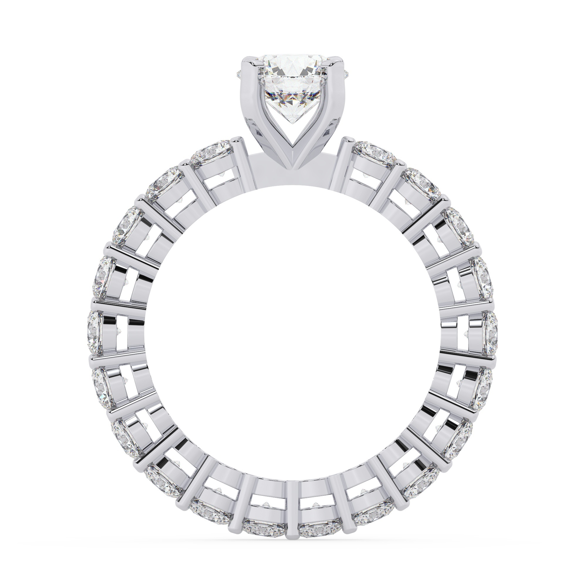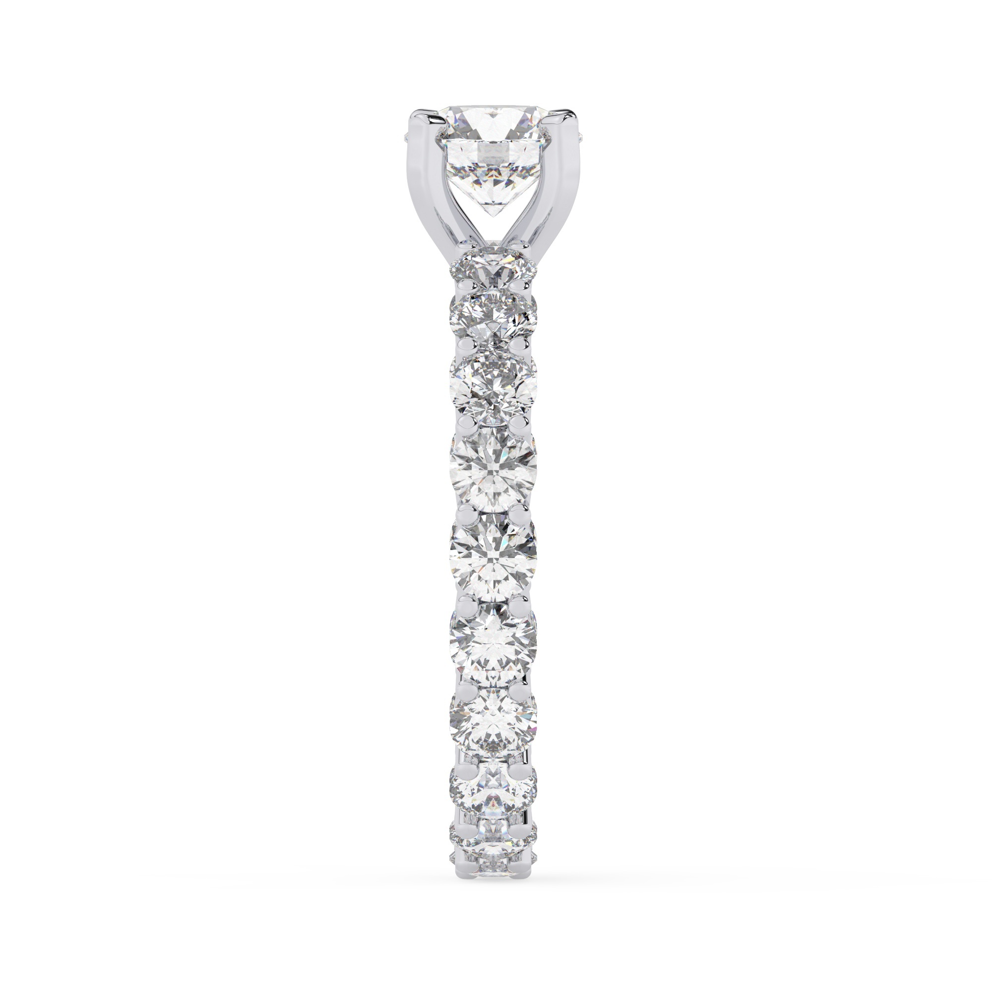 טבעת אירוסין סוליטר וזירקונים בצדדים איטרנטיני דגם 50044 זהב לבן 14 קראט במרכז זירקוניה 1.50 קראט בחיתוך עגול מסביב ובצדדים זירקונים בחיתוך עגול