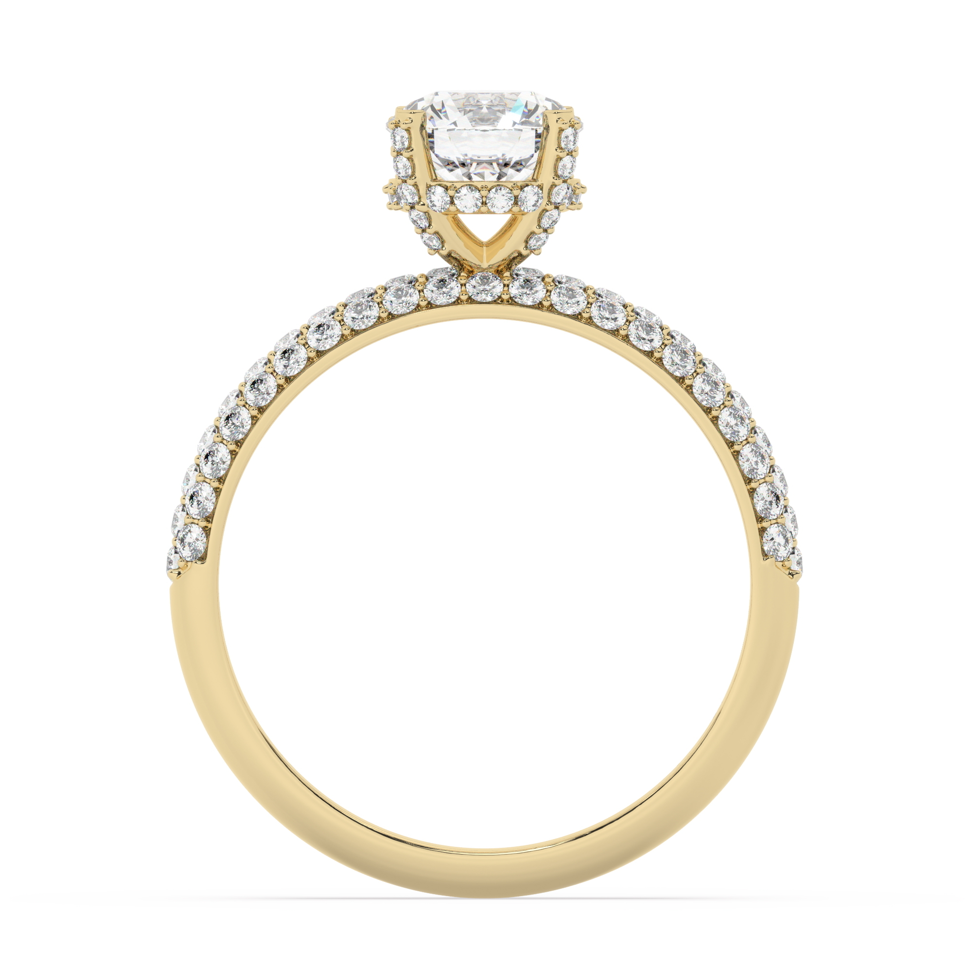 50% הנחהטבעת אירוסין היילו דגם ליטל זהב צהוב 14 קראט במרכז יהלום מעבדה 1 קראט מסביבו ובצדדים שורה של יהלומים עם תעודה גמולוגית אירופאית IGI טבעת הצעת נישואין