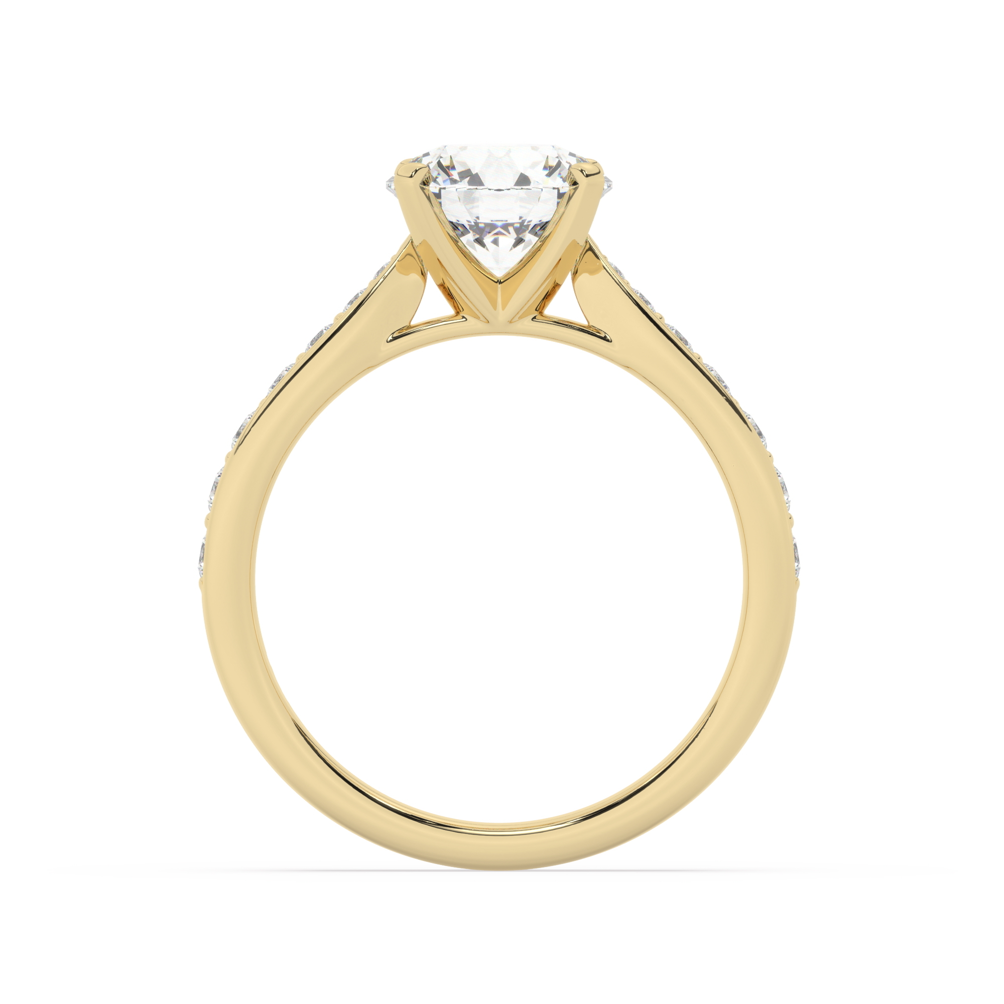טבעת אירוסין סוליטר וזירקונים בצדדים דגם 50017 זהב צהוב 14 קראט במרכז זירקוניה 1.50 קראט בחיתוך עגול מסביב ובצדדים זירקונים בחיתוך עגול