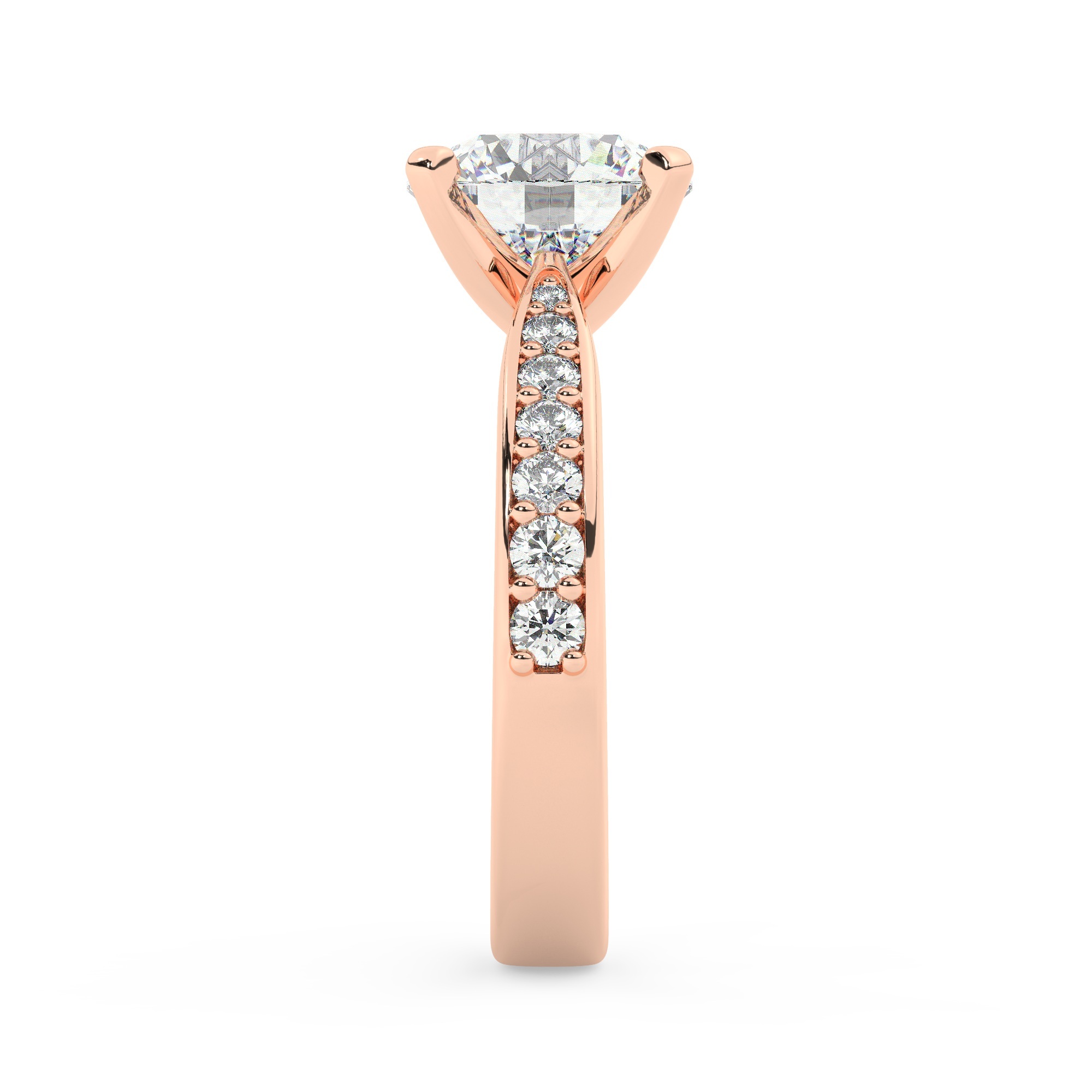 טבעת אירוסין סוליטר וזירקונים בצדדים דגם 50017 כסף מצופה זהב אדום רוזגולד במרכז זירקוניה 2 קראט בחיתוך עגול מסביב ובצדדים זירקונים בחיתוך עגול