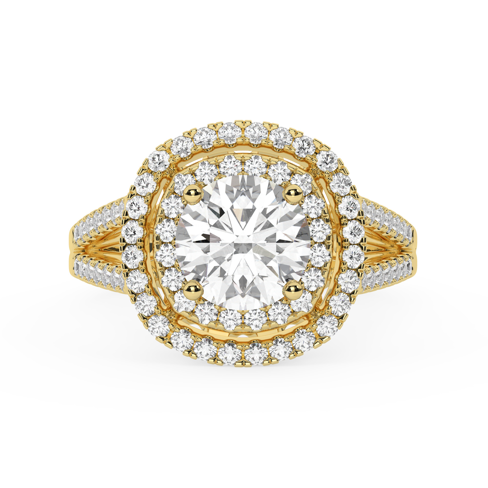50% הנחהטבעת אירוסין היילו דגם ליטל זהב צהוב 14 קראט במרכז אבן מעבדה מוסונייט 1 קראט מסביבה ובצדדים שורה של אבני מעבדה עם תעודה גמולוגית בינלאומית GRA