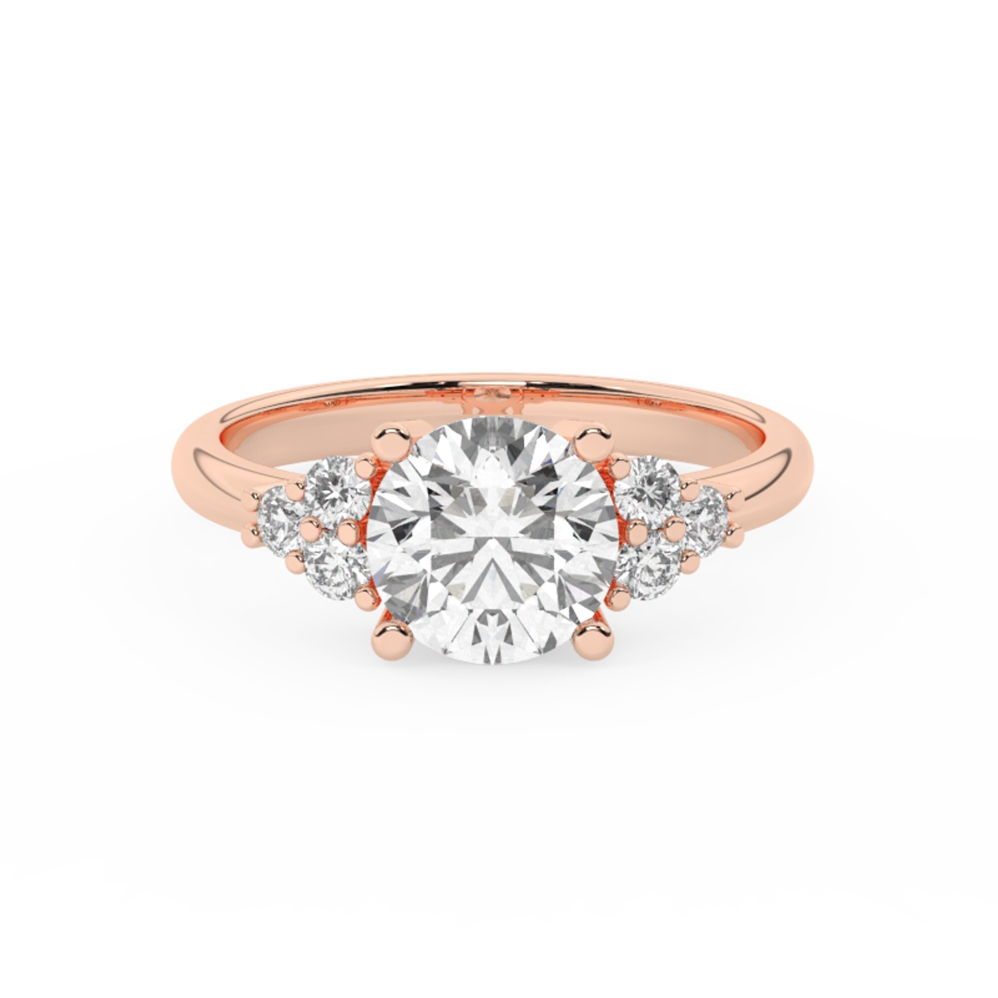 טבעת אירוסין סוליטר וזירקונים בצדדים דגם 50041 זהב אדום רוזגולד 14 קראט במרכז זירקוניה 2.50 קראט בחיתוך עגול מסביב ובצדדים זירקונים בחיתוך עגול