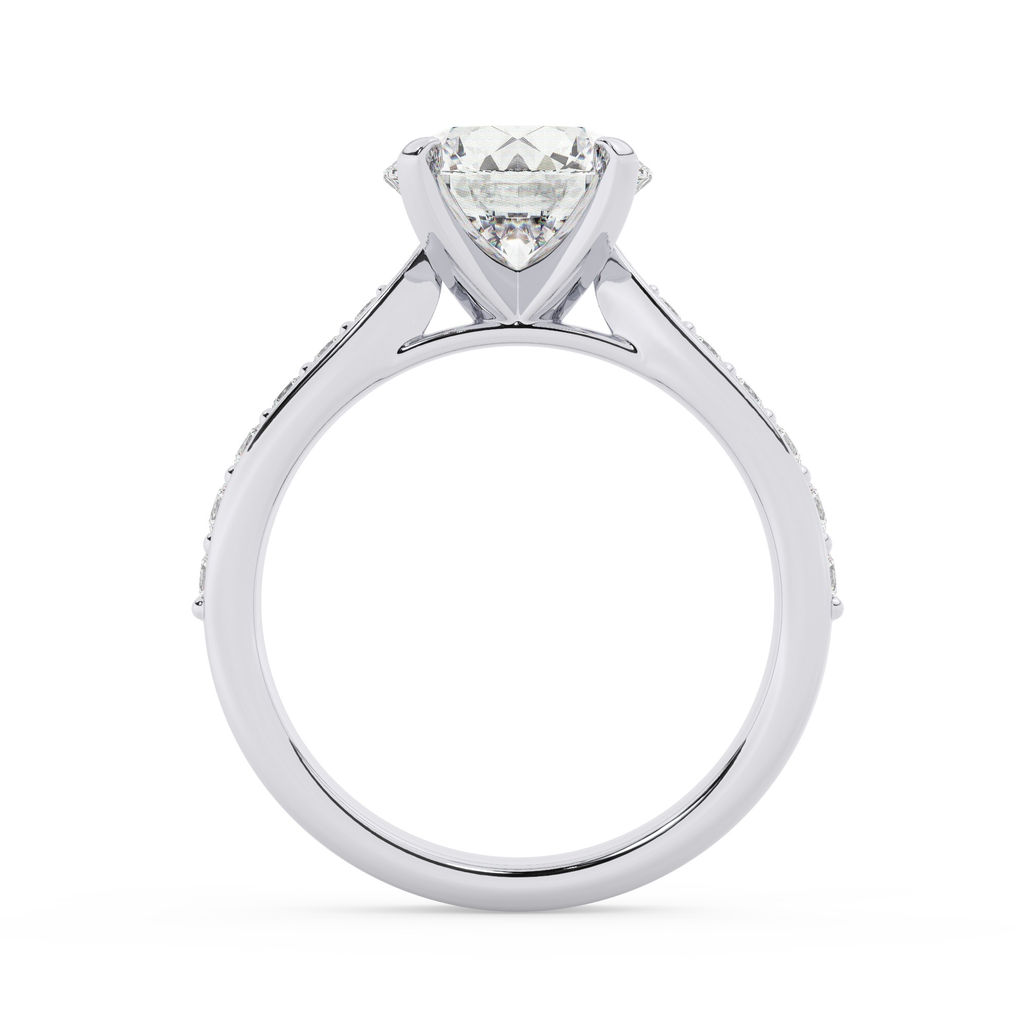 טבעת אירוסין סוליטר וזירקונים בצדדים דגם 50017 זהב לבן 14 קראט במרכז זירקוניה 2.50 קראט בחיתוך עגול מסביב ובצדדים זירקונים בחיתוך עגול