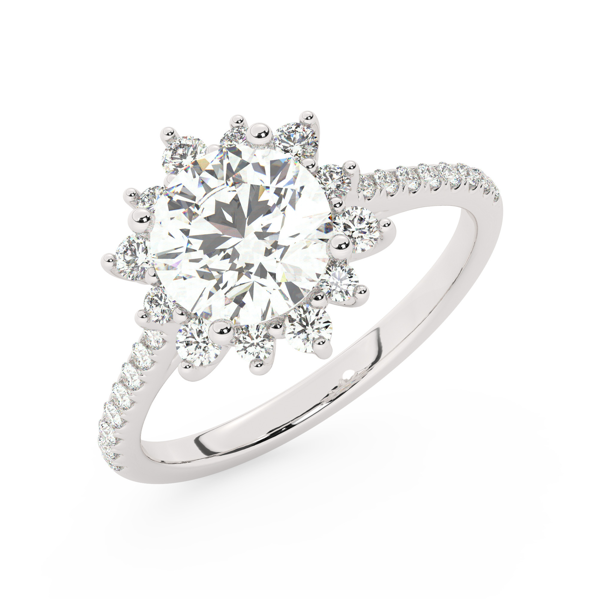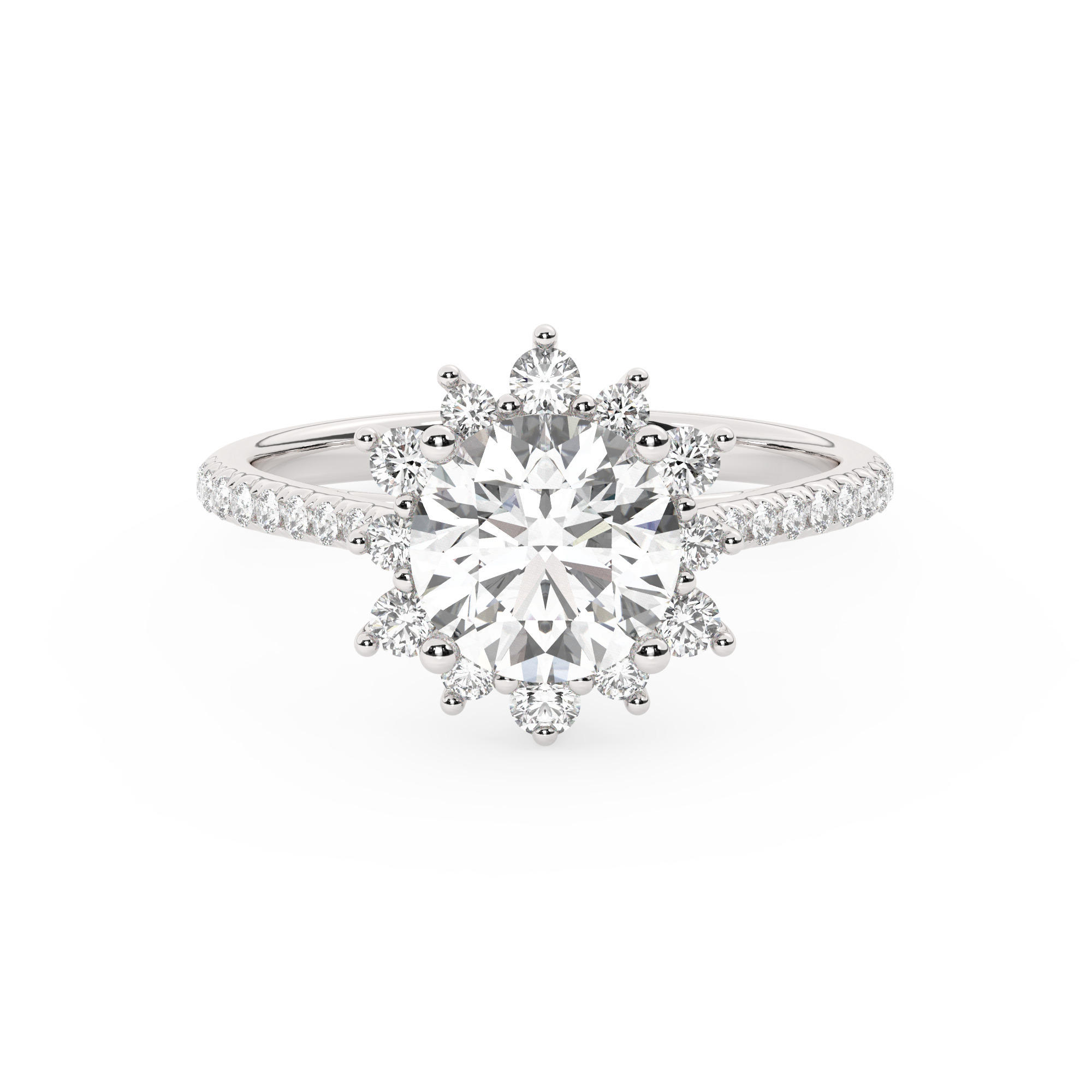 טבעת אירוסין היילו זירקונים מזהב לבן 14 קראט