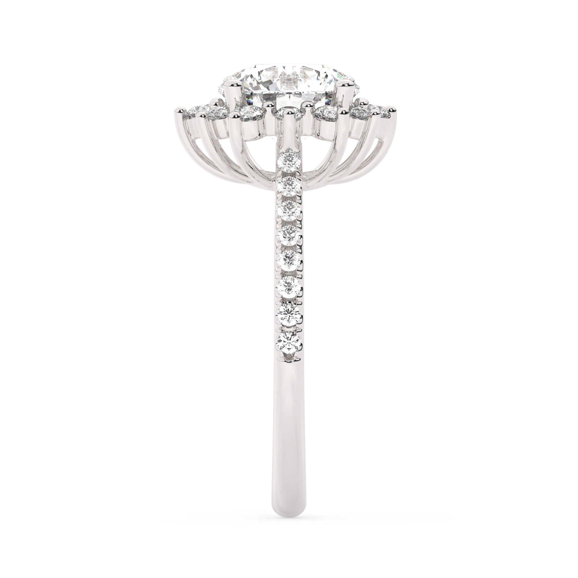 טבעת אירוסין היילו דגם 50024 זהב לבן 14 קראט במרכז זירקוניה 2.50 קראט בחיתוך עגול מסביב ובצדדים זירקונים בחיתוך עגול