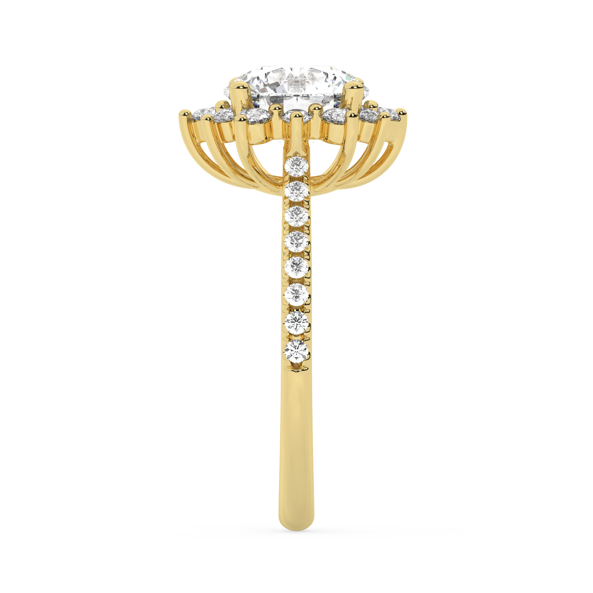 50% הנחהטבעת אירוסין היילו דגם ליטל זהב צהוב 14 קראט במרכז יהלום מעבדה 1 קראט מסביבו ובצדדים שורה של יהלומים עם תעודה גמולוגית אירופאית IGI טבעת הצעת נישואין