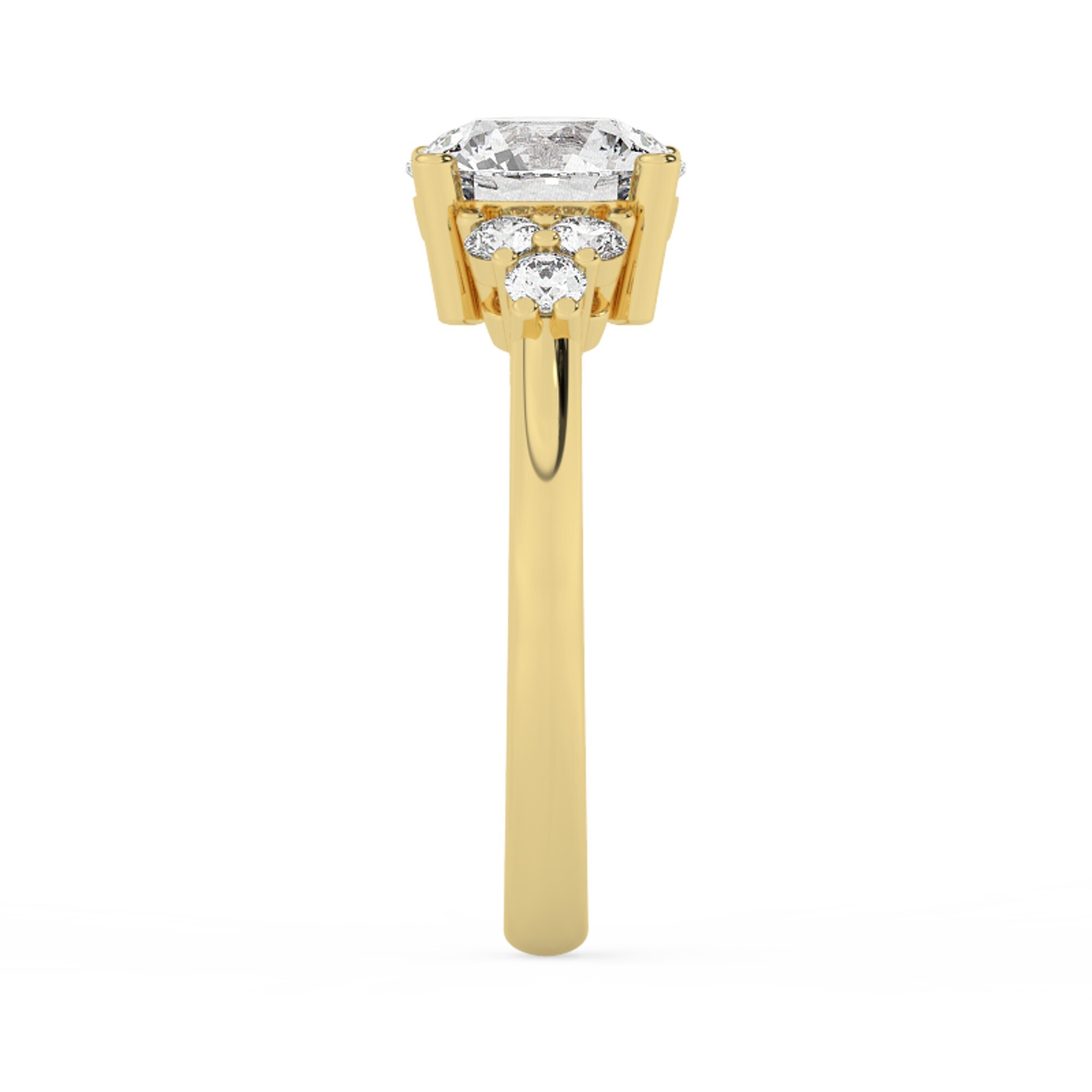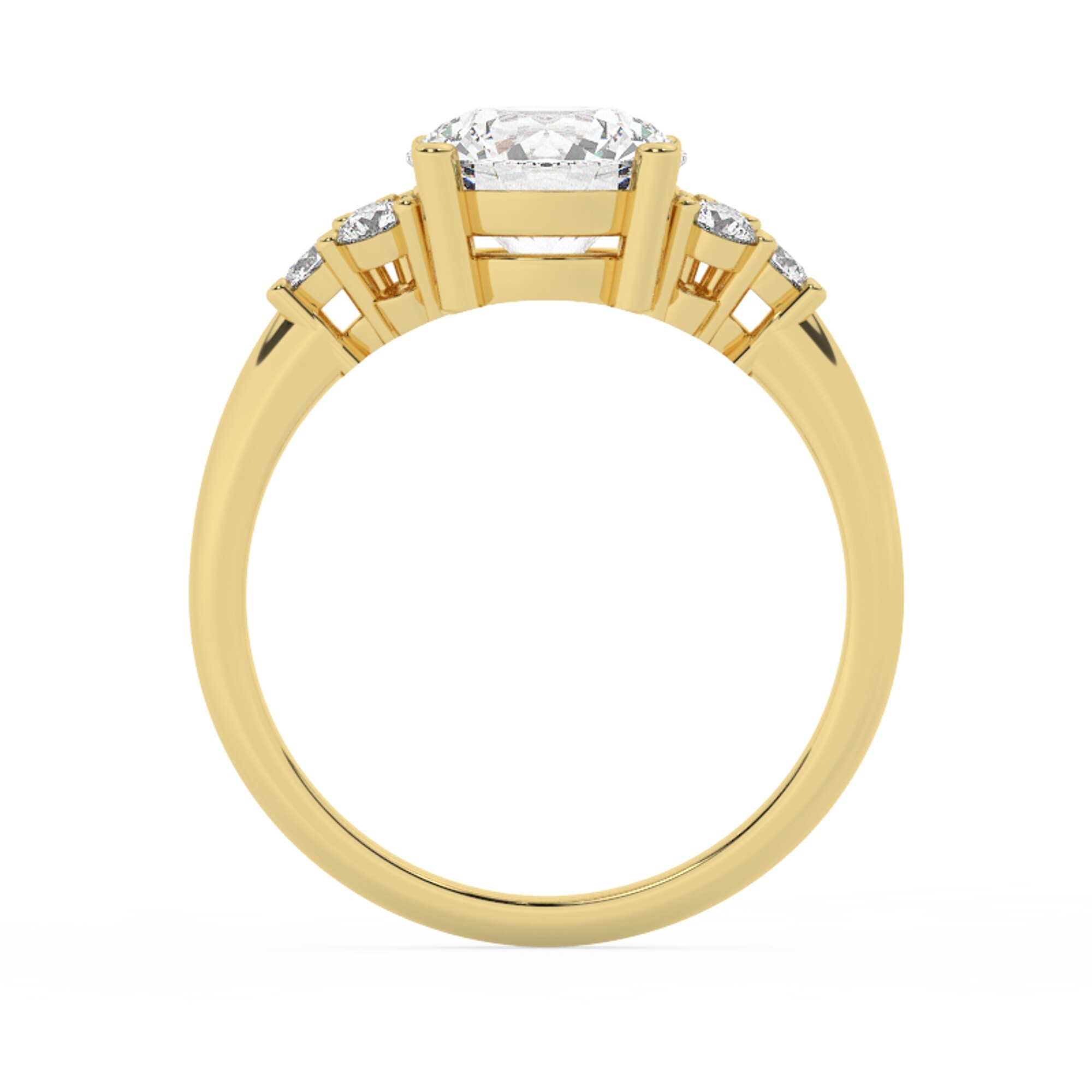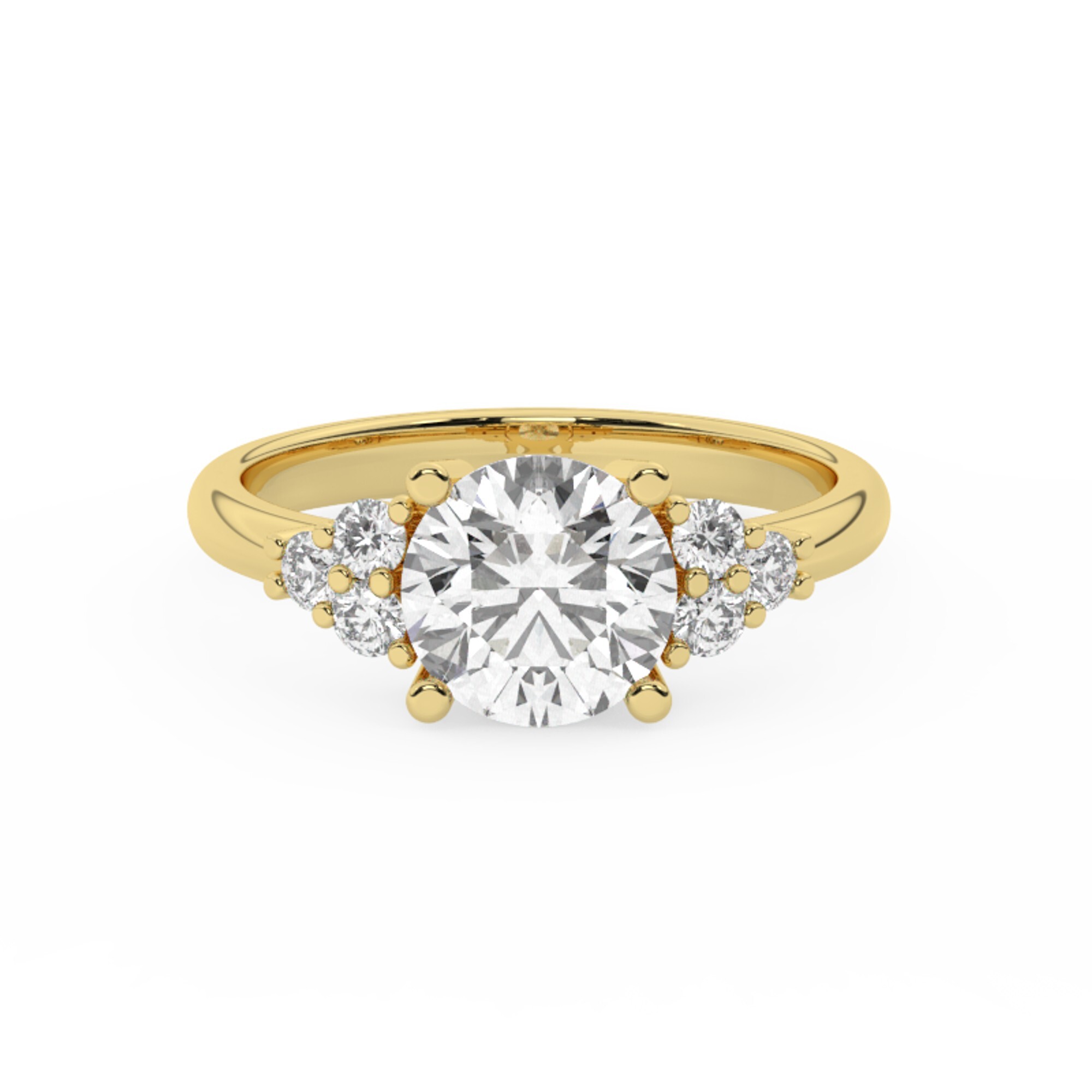 טבעת אירוסין סוליטר וזירקונים בצדדים דגם 50041 זהב צהוב 14 קראט במרכז זירקוניה 2.50 קראט בחיתוך עגול מסביב ובצדדים זירקונים בחיתוך עגול