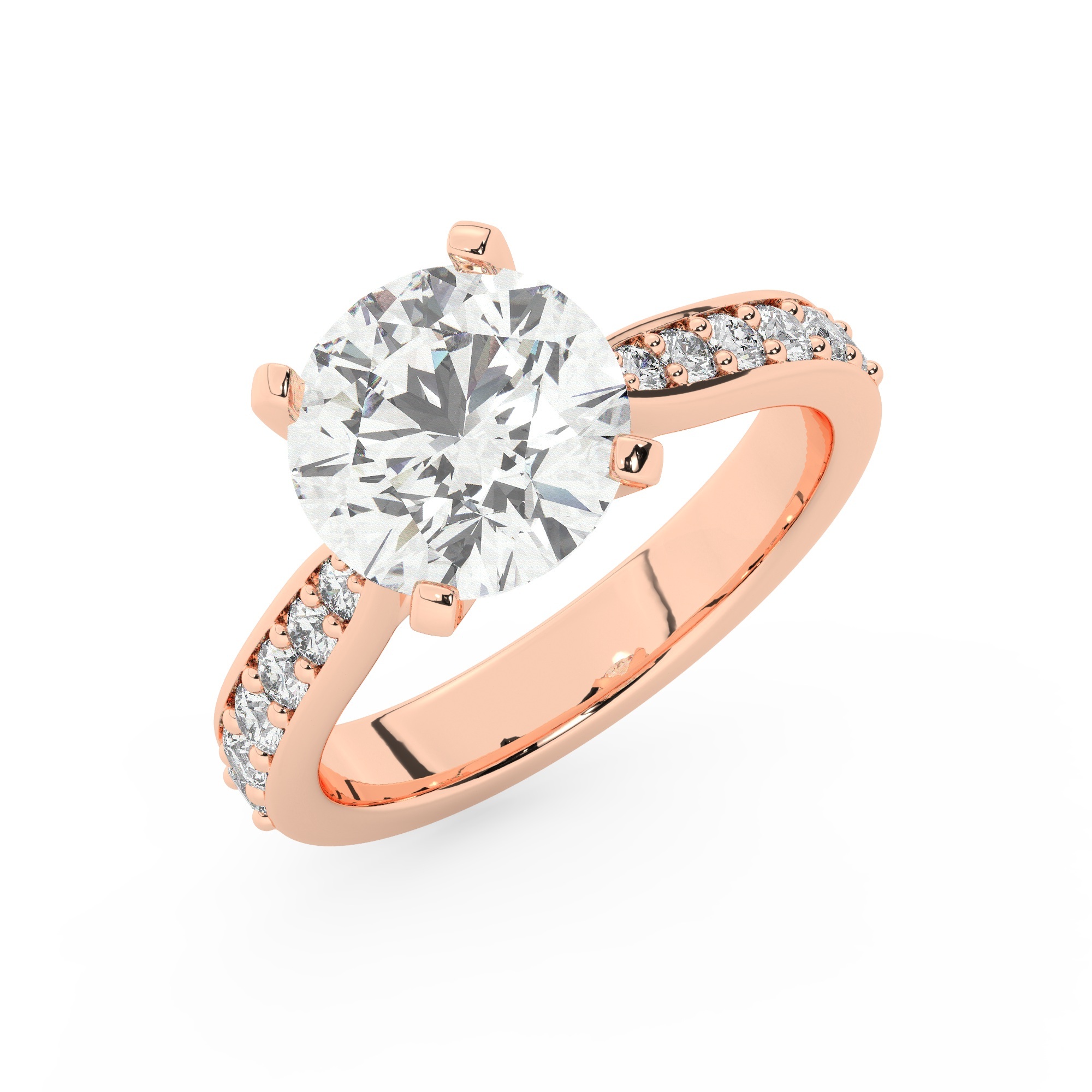 טבעת אירוסין סוליטר וזירקונים בצדדים דגם 50017 כסף מצופה זהב אדום רוזגולד במרכז זירקוניה 2.50 קראט בחיתוך עגול מסביב ובצדדים זירקונים בחיתוך עגול