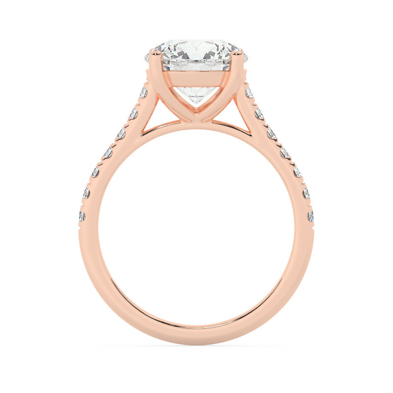 טבעת אירוסין סוליטר ויהלומים בצדדים דגם 50019 זהב אדום רוזגולד 14 קראט במרכז זירקוניה 3 קראט בחיתוך עגול מסביב ובצדדים זירקונים בחיתוך עגול