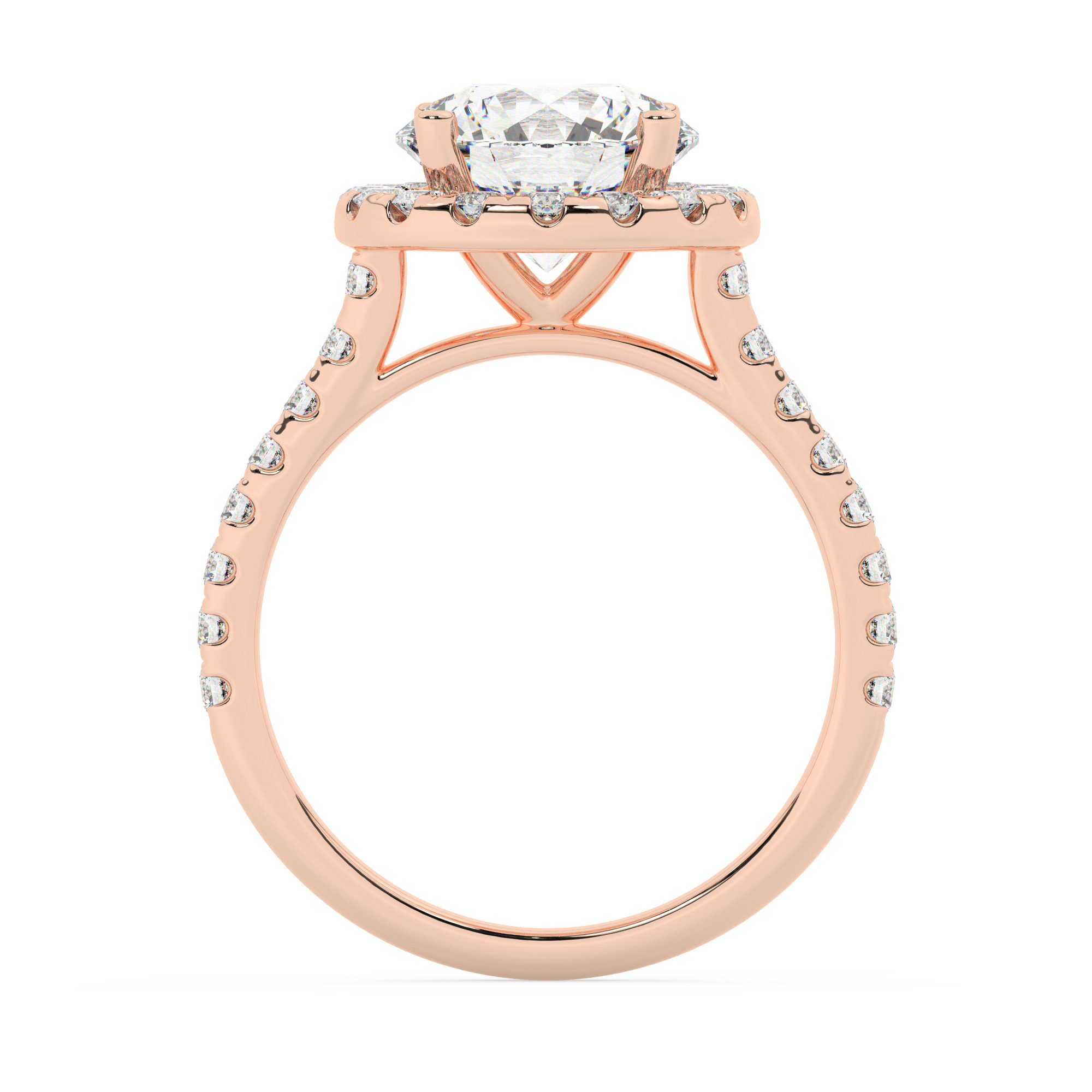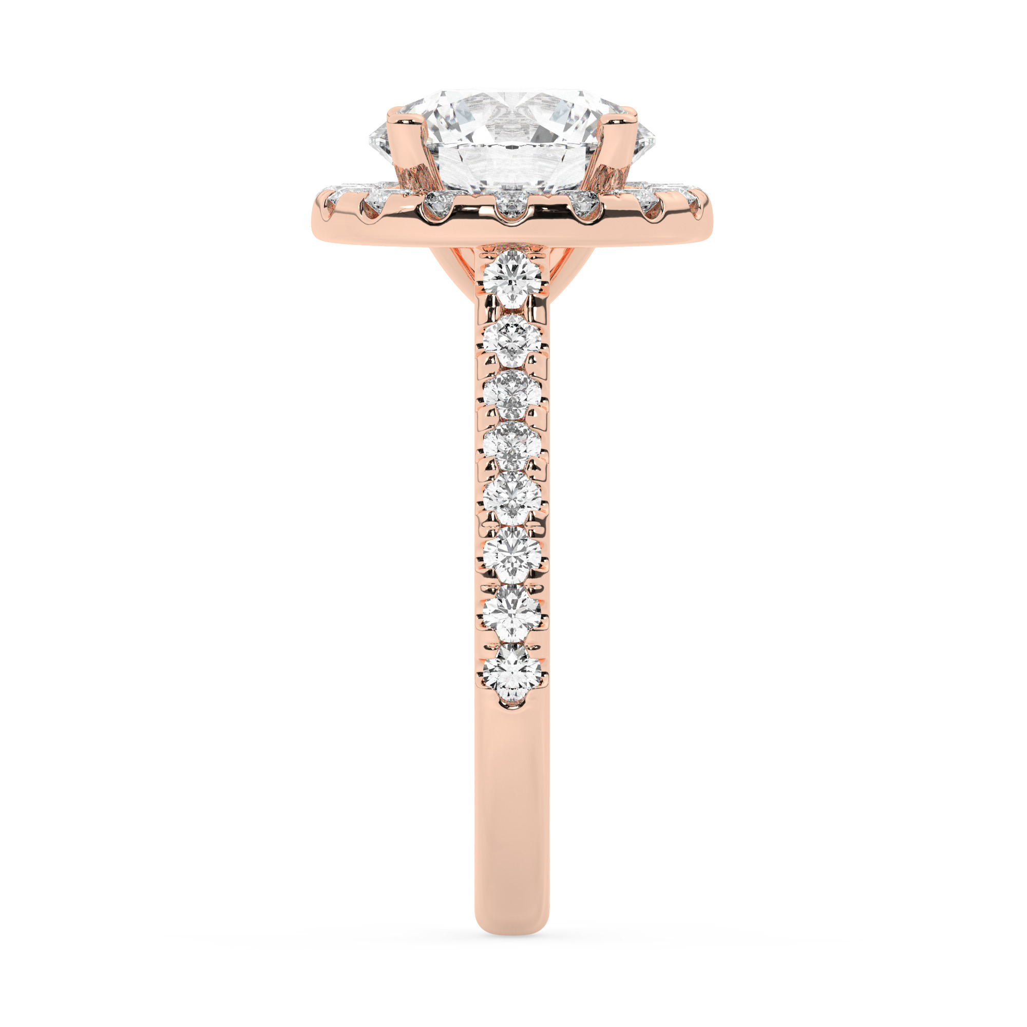 טבעת אירוסין היילו דגם 50026 זהב אדום רוזגולד 14 קראט במרכז זירקוניה 3 קראט בחיתוך עגול מסביב ובצדדים זירקונים בחיתוך עגול