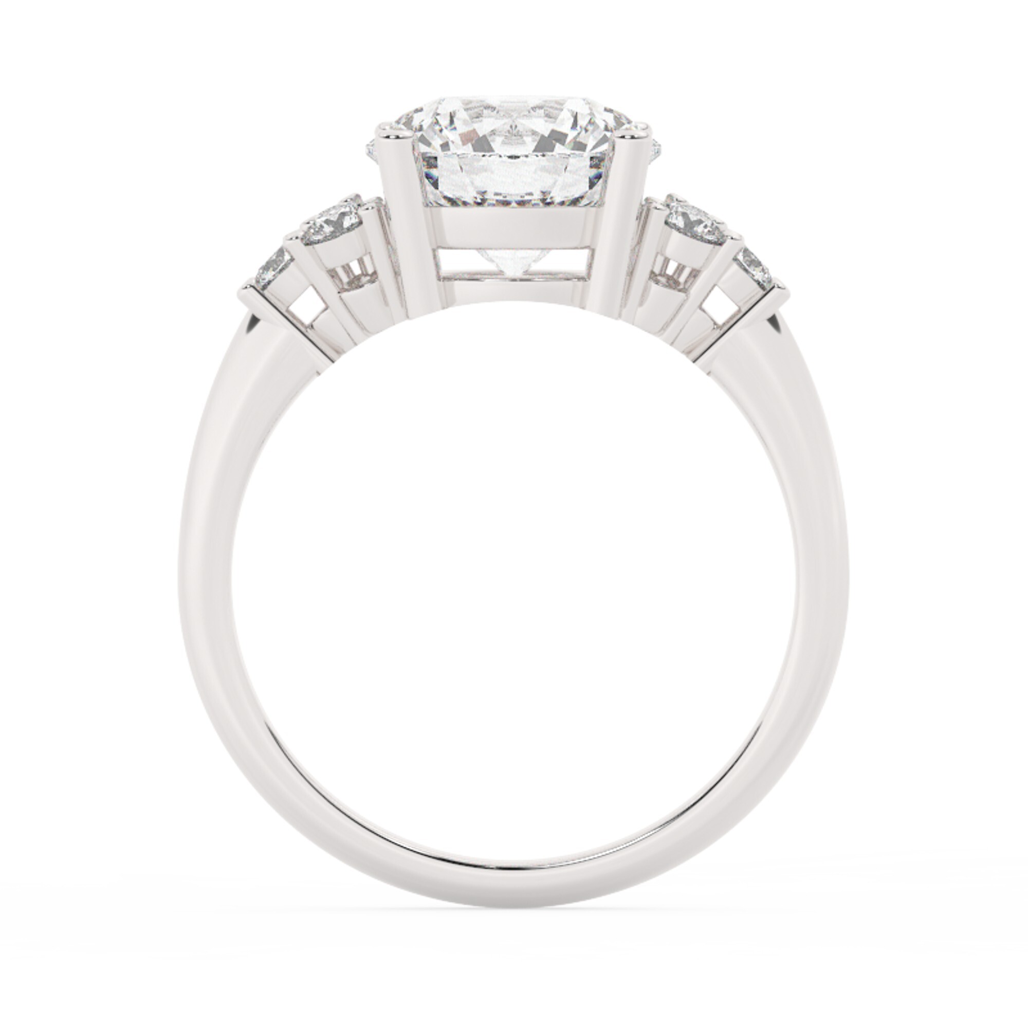 סביב האבן המרכזית, שישה אבני זירקוניה נוספות במשקל 0.30 קראט כל אחת, נושאות את כל המראה המלכותי של הטבעת. אותן אבנים צדדיות מצופות בזירקוניה, ועוד בעלות צבע D וניקיון VVS1, משדרות יוקרה וביטחון. כל אבן נשתלה בעבודת יד מאומנת, ומדובר ברמת איכות שאין כמותה בתעשייה.
