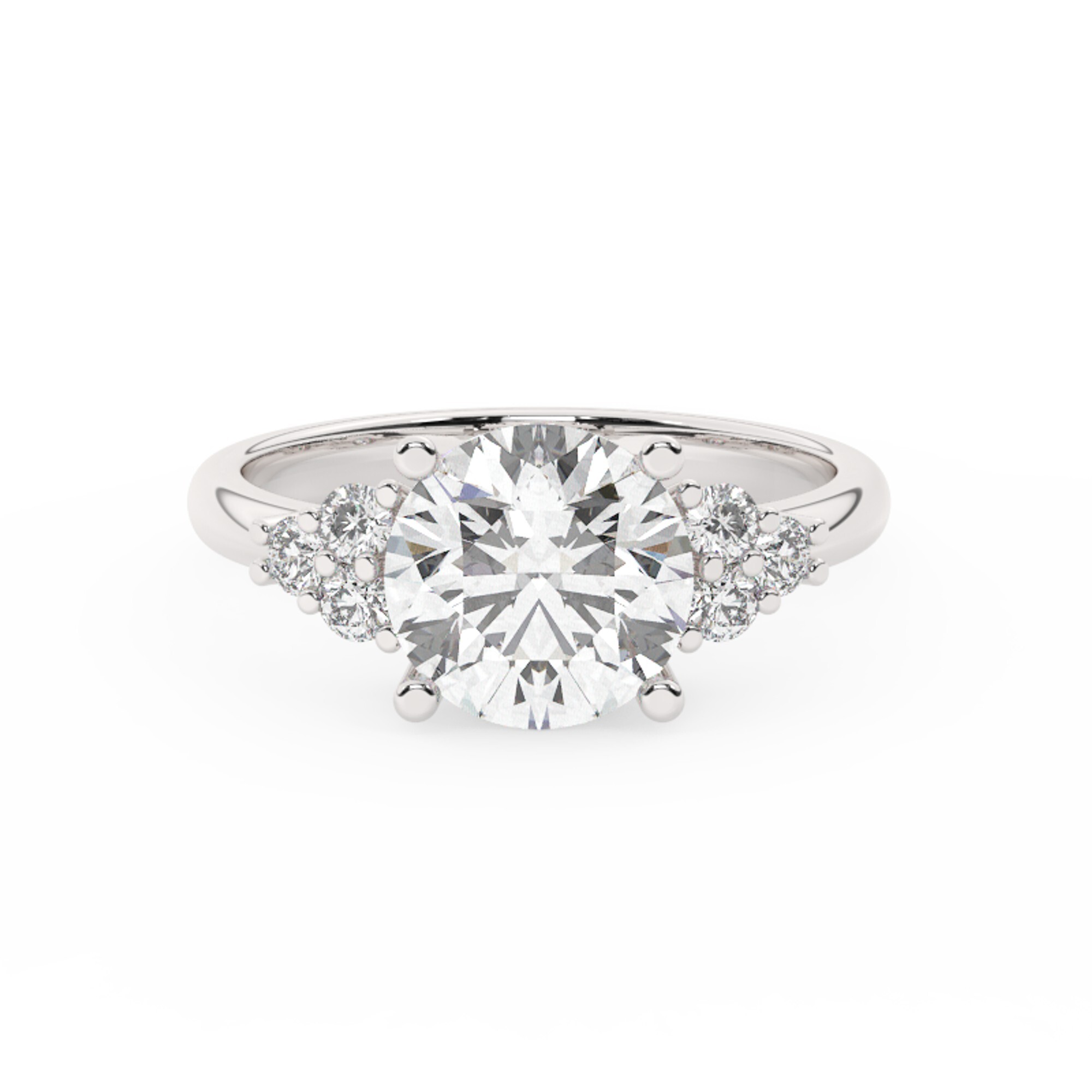 טבעת אירוסין סוליטר וזירקונים בצדדים דגם 50041 זהב לבן 14 קראט במרכז זירקוניה 3 קראט בחיתוך עגול מסביב ובצדדים זירקונים בחיתוך עגול