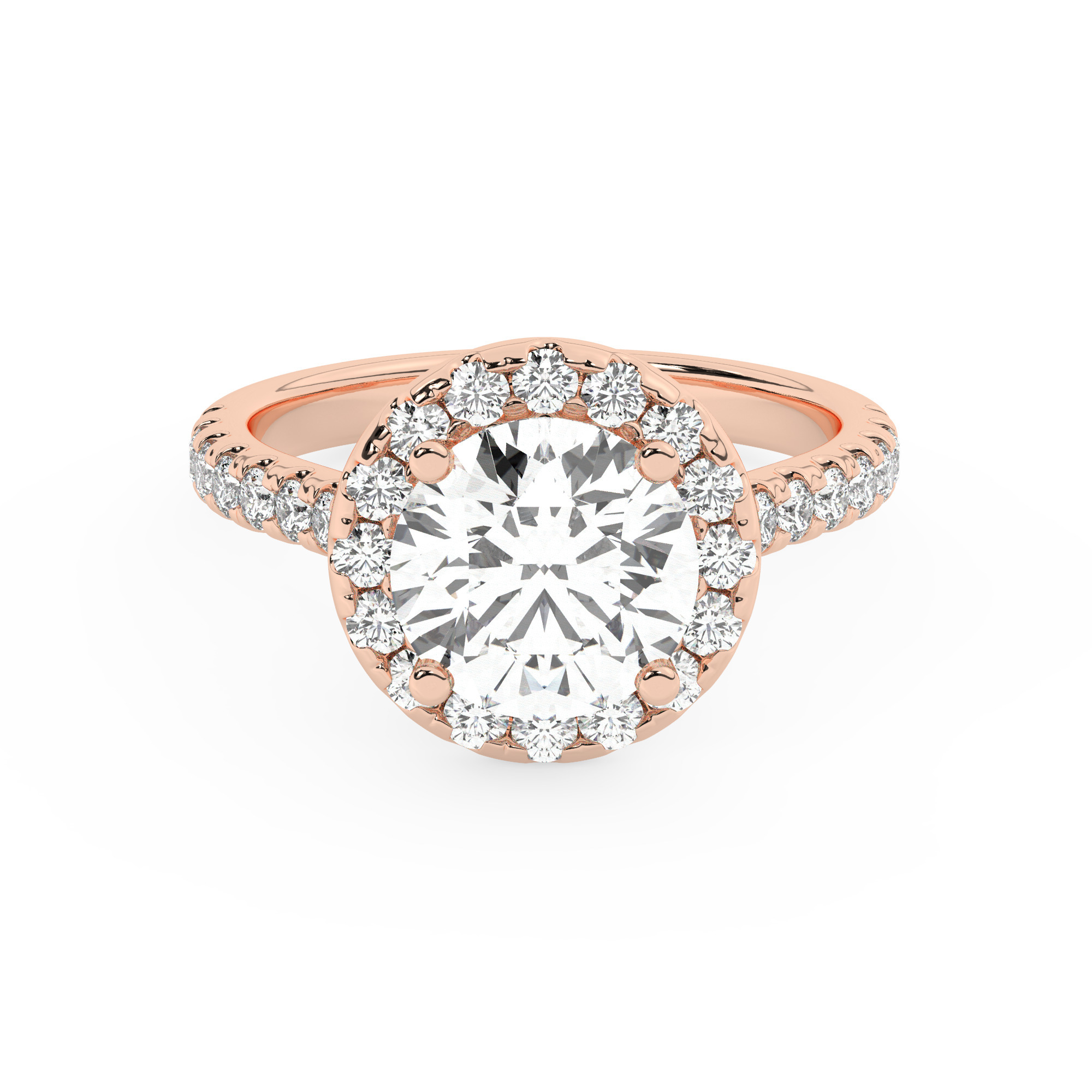 טבעת אירוסין היילו דגם 50026 כסף מצופה זהב אדום רוזגולד במרכז זירקוניה 3 קראט בחיתוך עגול מסביב ובצדדים זירקונים בחיתוך עגול
