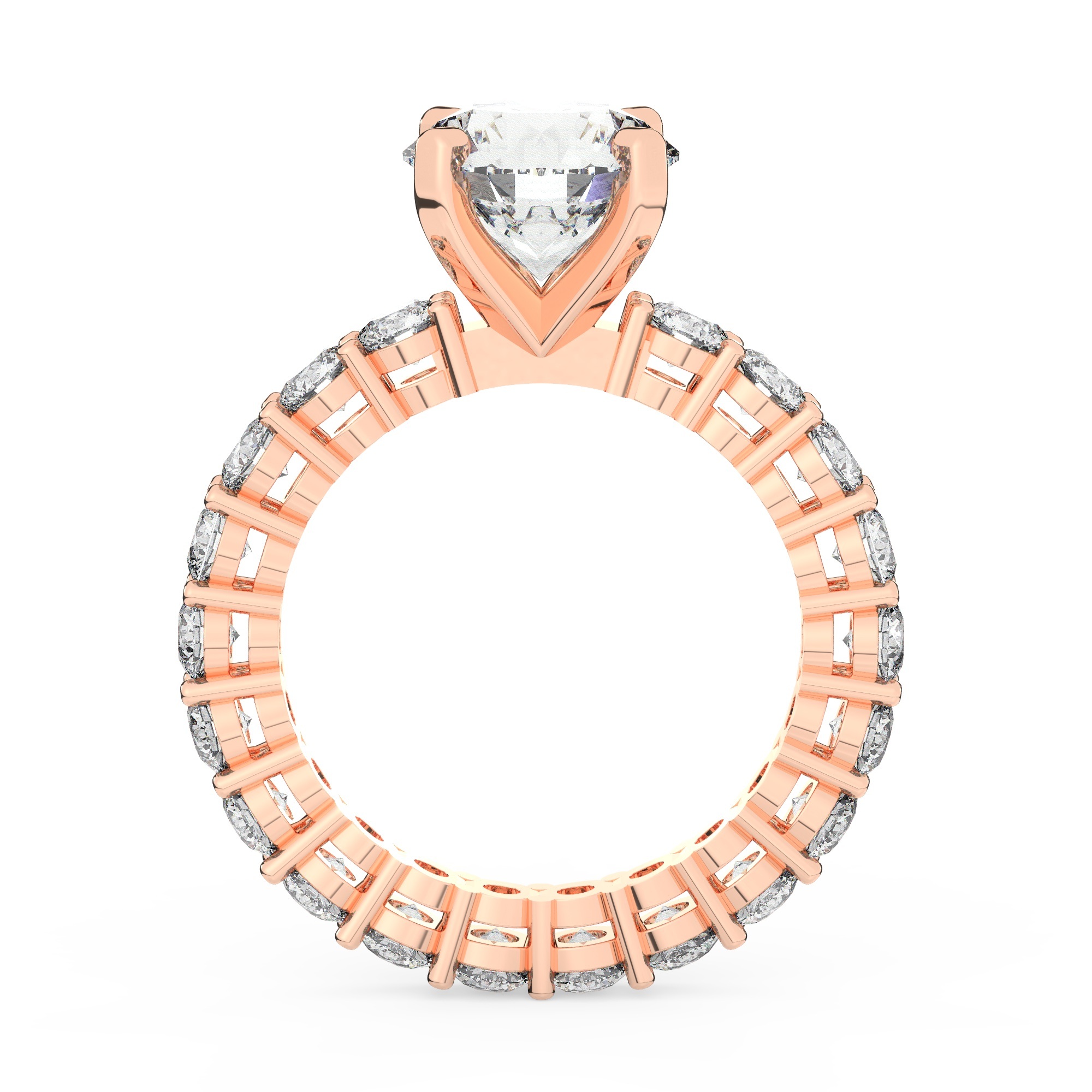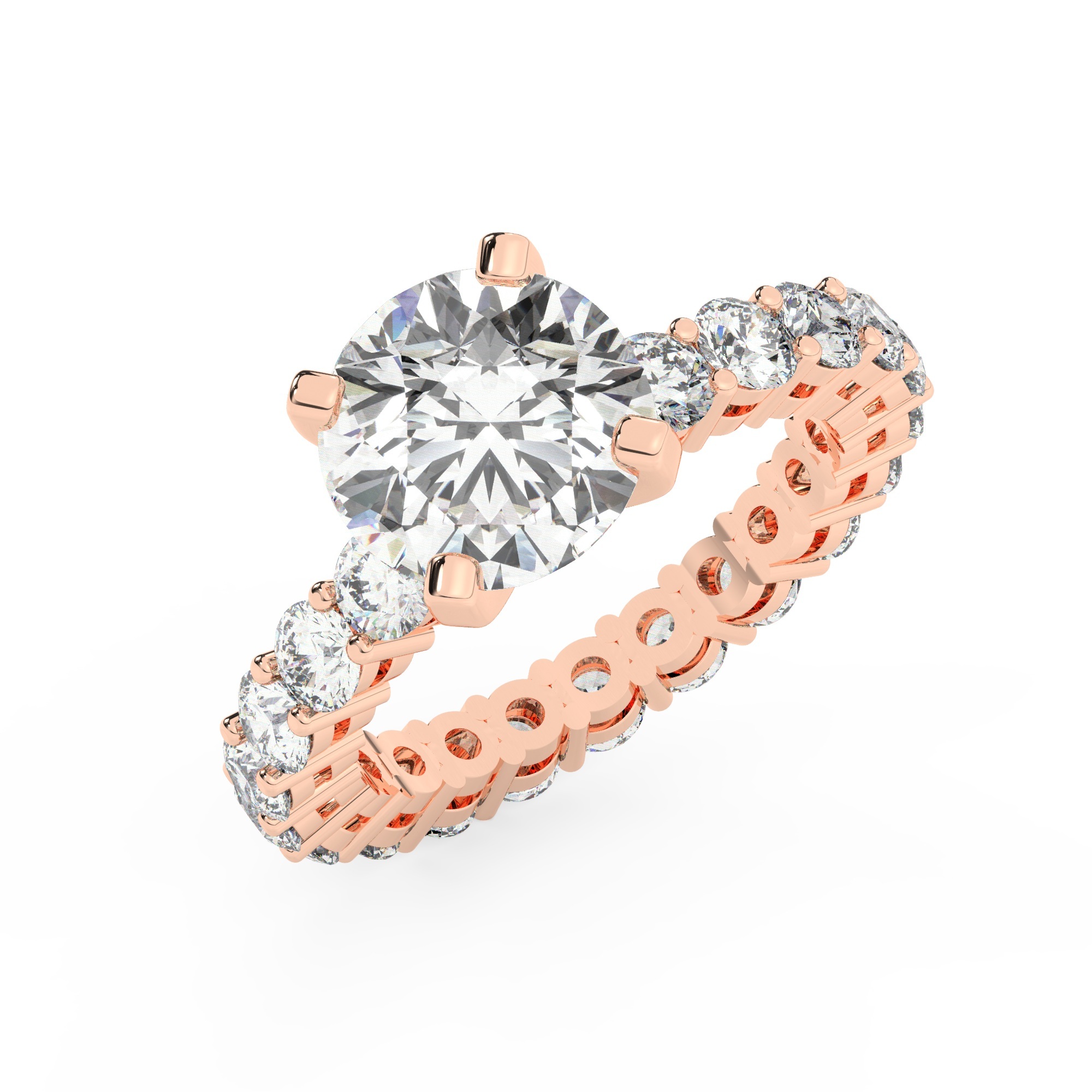 טבעת אירוסין סוליטר וזירקונים בצדדים איטרנטיני דגם 50044 כסף מצופה זהב אדום רוזגולד במרכז זירקוניה 3 קראט בחיתוך עגול מסביב ובצדדים זירקונים בחיתוך עגול