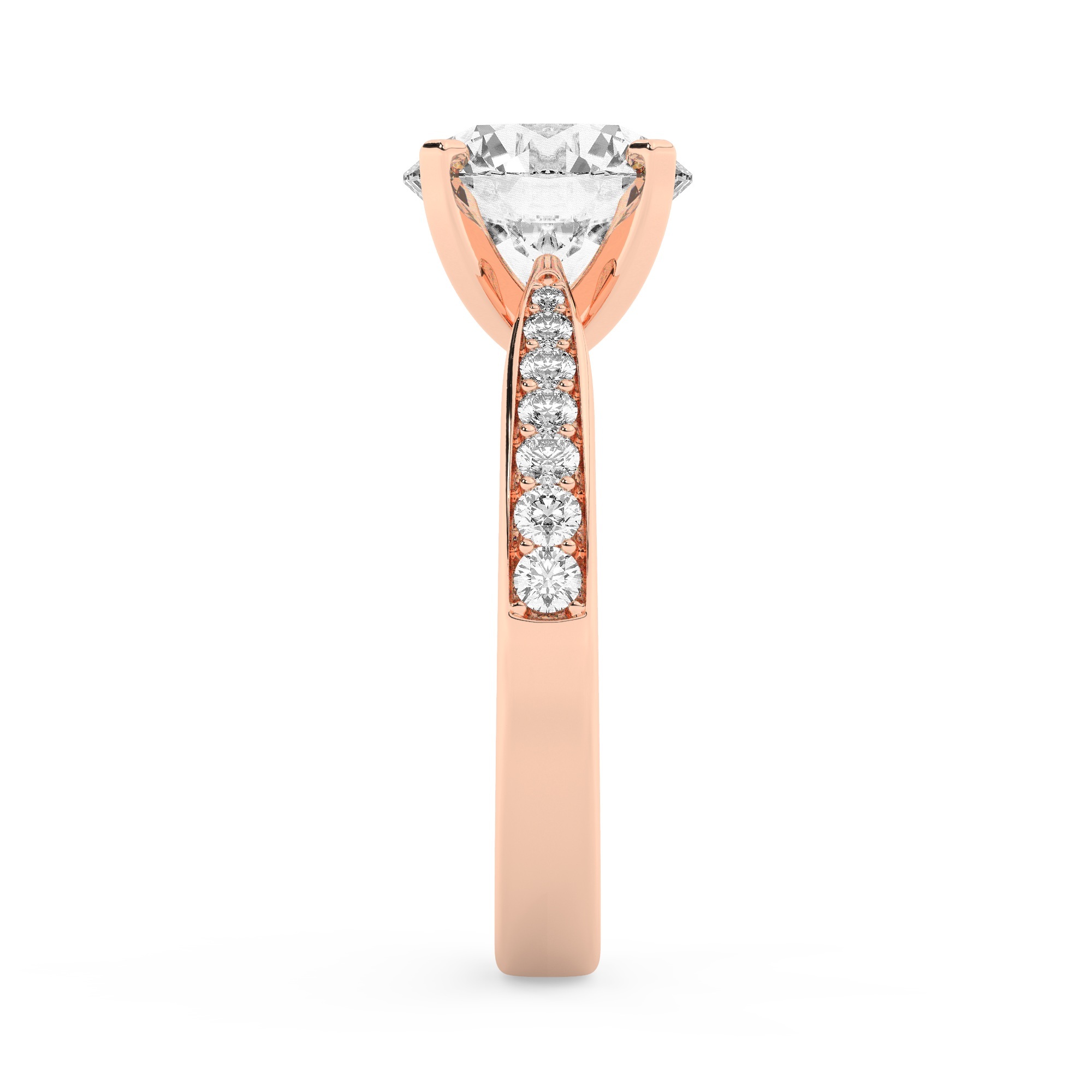 טבעת אירוסין סוליטר וזירקונים בצדדים דגם 50017 זהב אדום רוזגולד 14 קראט במרכז זירקוניה 4 קראט בחיתוך עגול מסביב ובצדדים זירקונים בחיתוך עגול