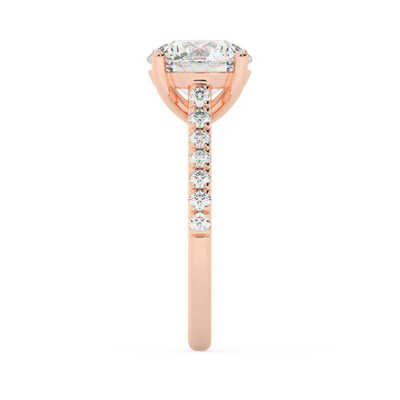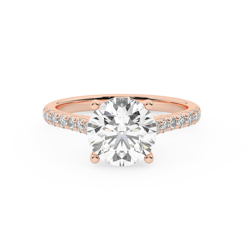 טבעת אירוסין סוליטר ויהלומים בצדדים דגם 50019 זהב אדום רוזגולד 14 קראט במרכז זירקוניה 4 קראט בחיתוך עגול מסביב ובצדדים זירקונים בחיתוך עגול