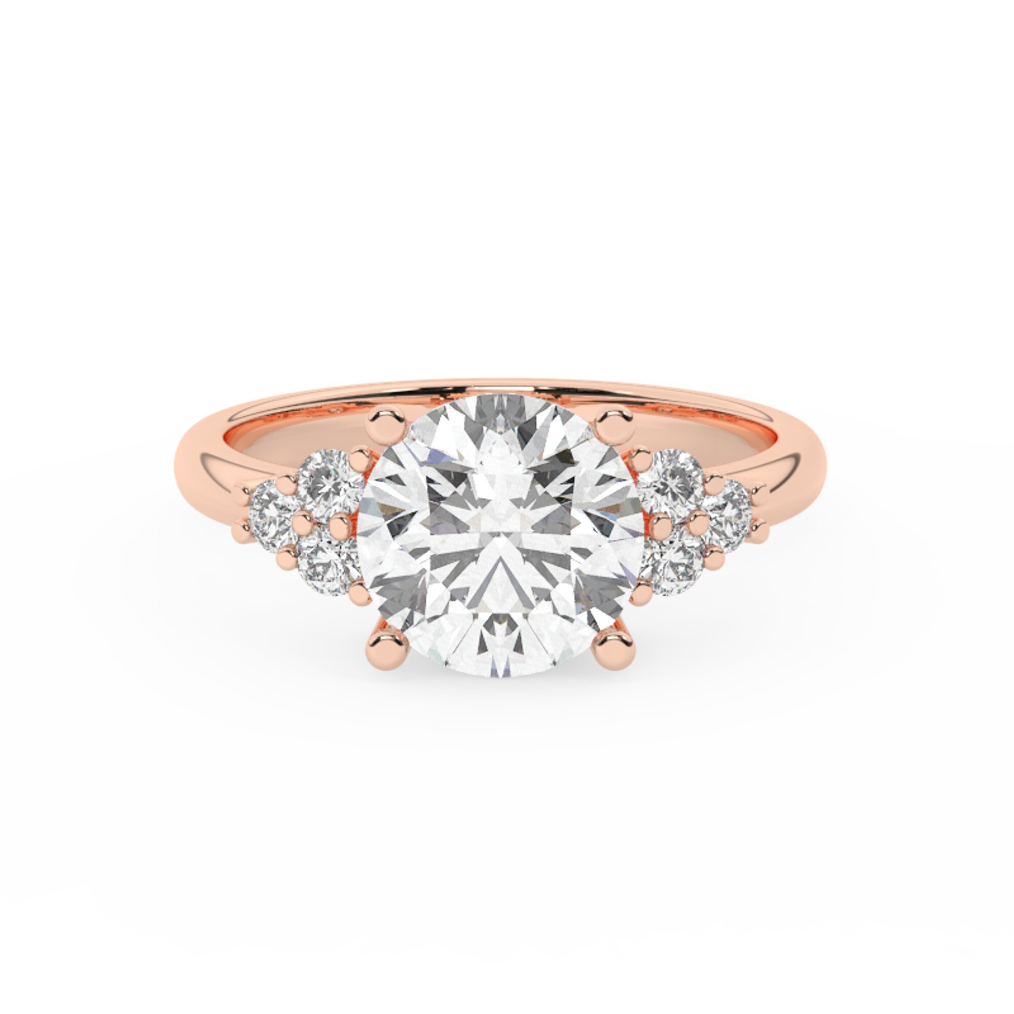 טבעת אירוסין סוליטר וזירקונים בצדדים דגם 50041 זהב אדום רוזגולד 14 קראט במרכז זירקוניה 4 קראט בחיתוך עגול מסביב ובצדדים זירקונים בחיתוך עגול