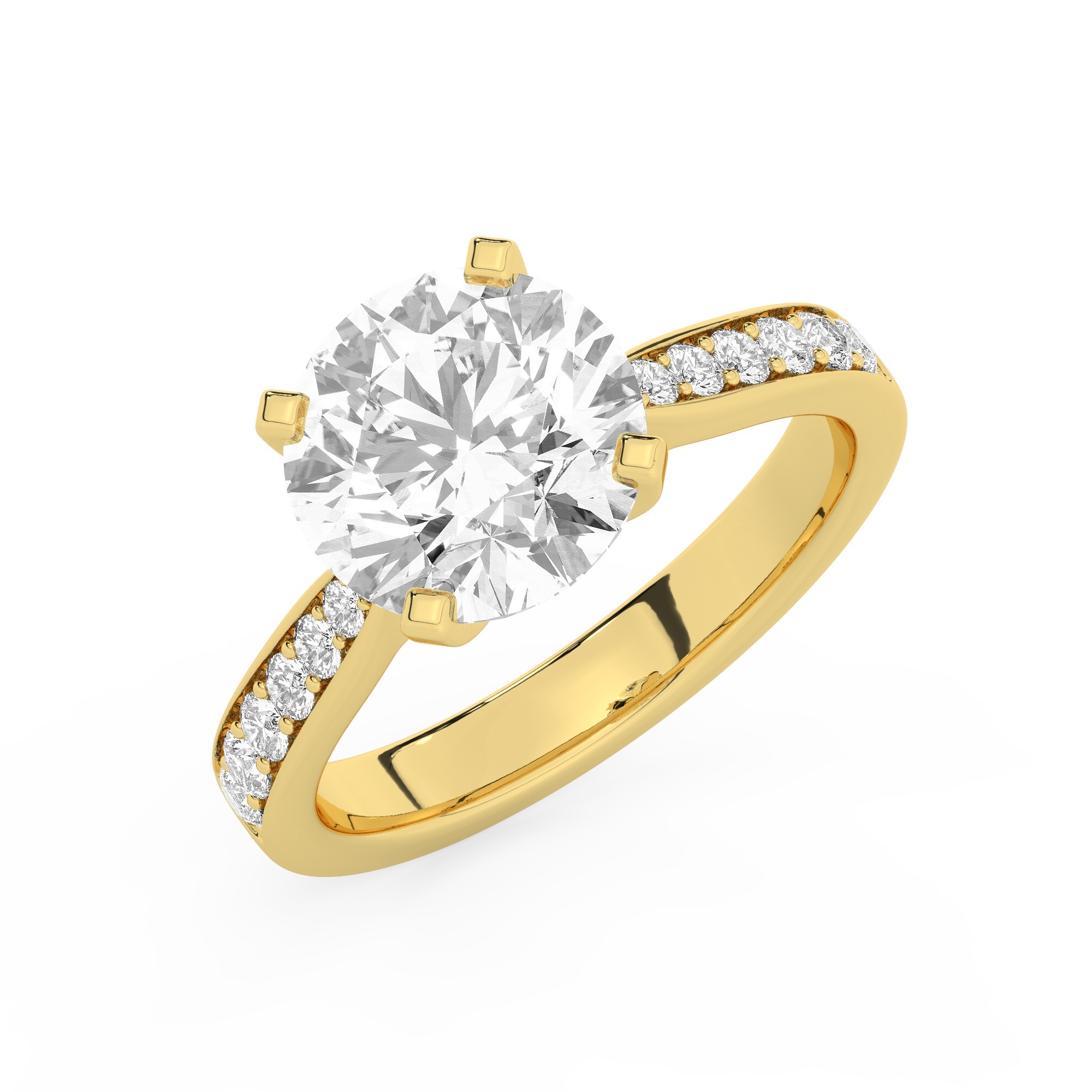 טבעת אירוסין סוליטר וזירקונים בצדדים דגם 50017 זהב צהוב 14 קראט במרכז זירקוניה 4 קראט בחיתוך עגול מסביב ובצדדים זירקונים בחיתוך עגול