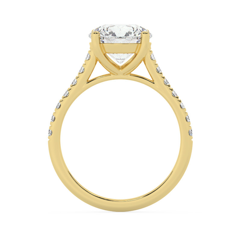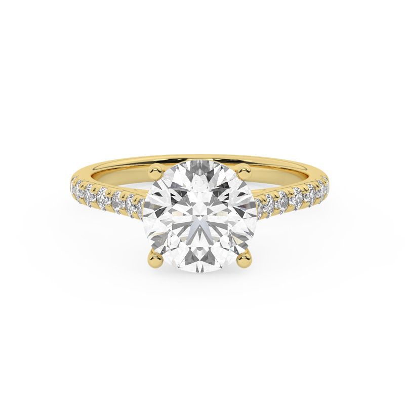 טבעת אירוסין סוליטר ויהלומים בצדדים דגם 50019 זהב צהוב 14 קראט במרכז זירקוניה 4 קראט בחיתוך עגול מסביב ובצדדים זירקונים בחיתוך עגול