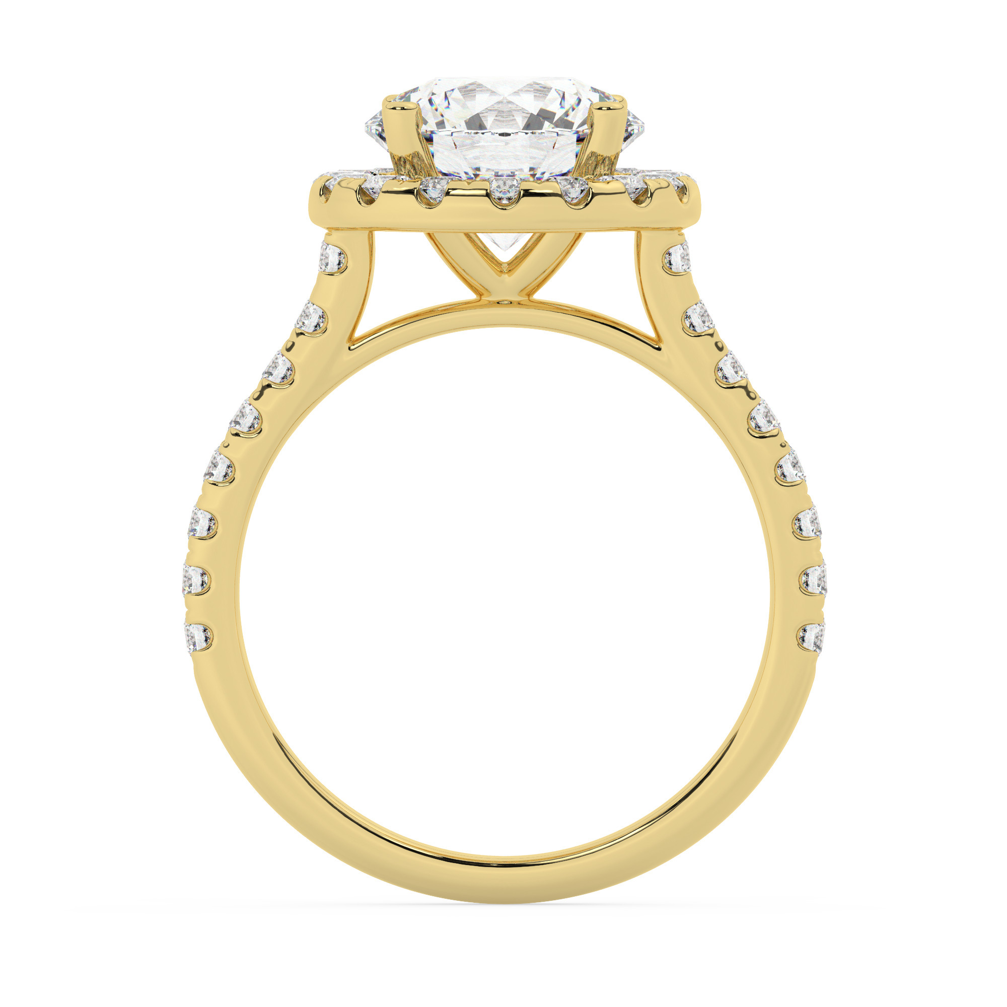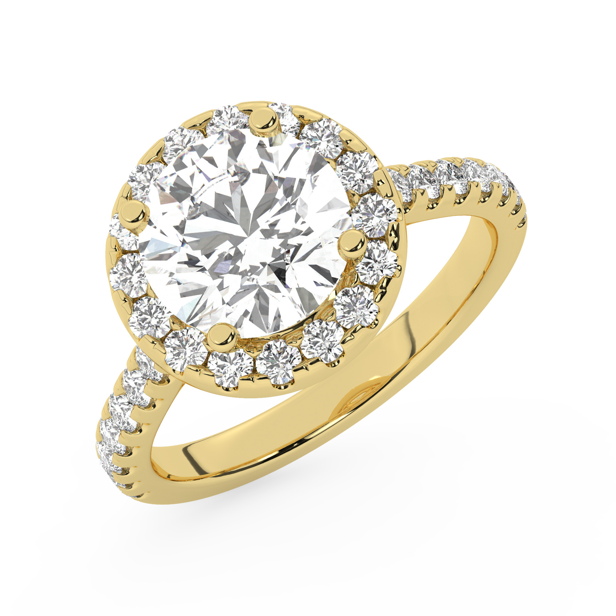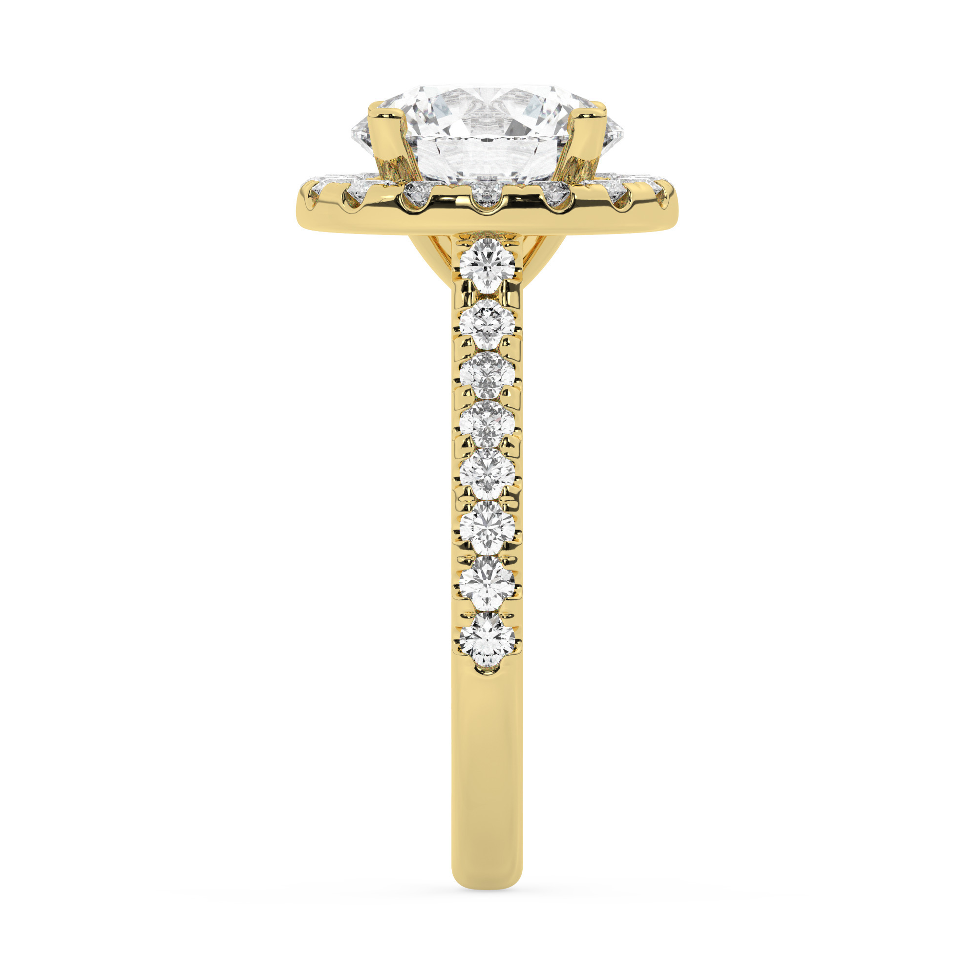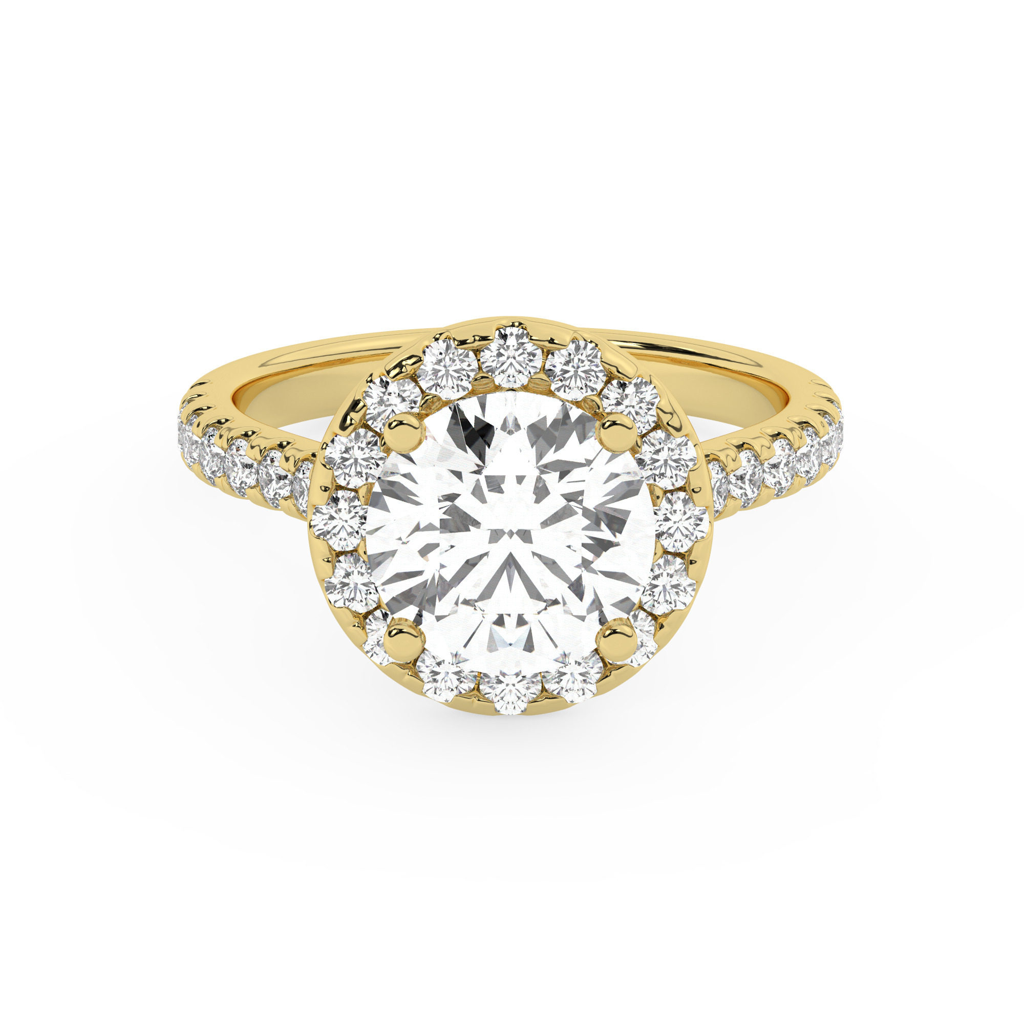 טבעת אירוסין היילו דגם 50026 זהב צהוב 14 קראט במרכז זירקוניה 4 קראט בחיתוך עגול מסביב ובצדדים זירקונים בחיתוך עגול