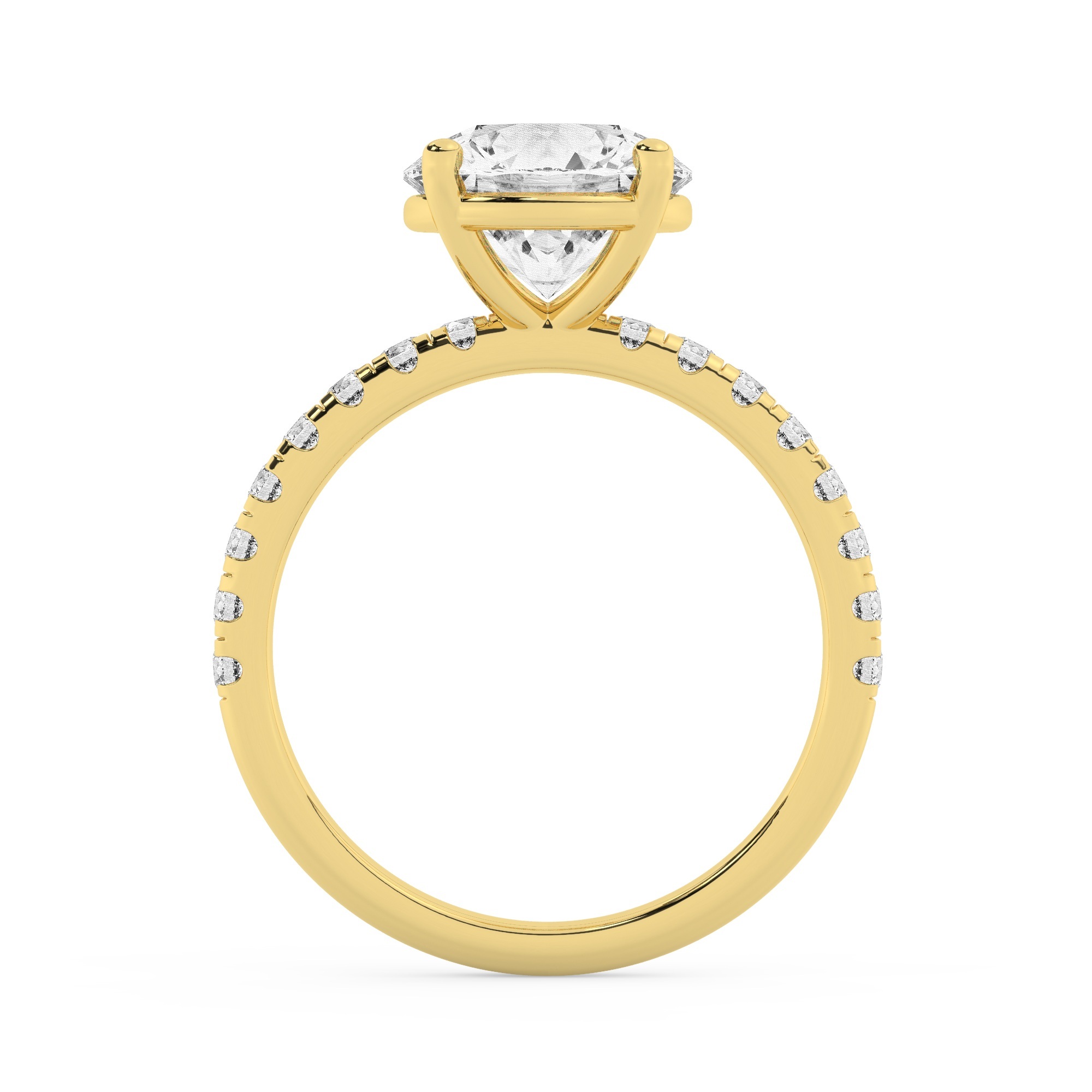 טבעת אירוסין סוליטר וזירקונים בצדדים דגם 50037 זהב צהוב 14 קראט במרכז זירקוניה 4 קראט בחיתוך עגול מסביב ובצדדים זירקונים בחיתוך עגול