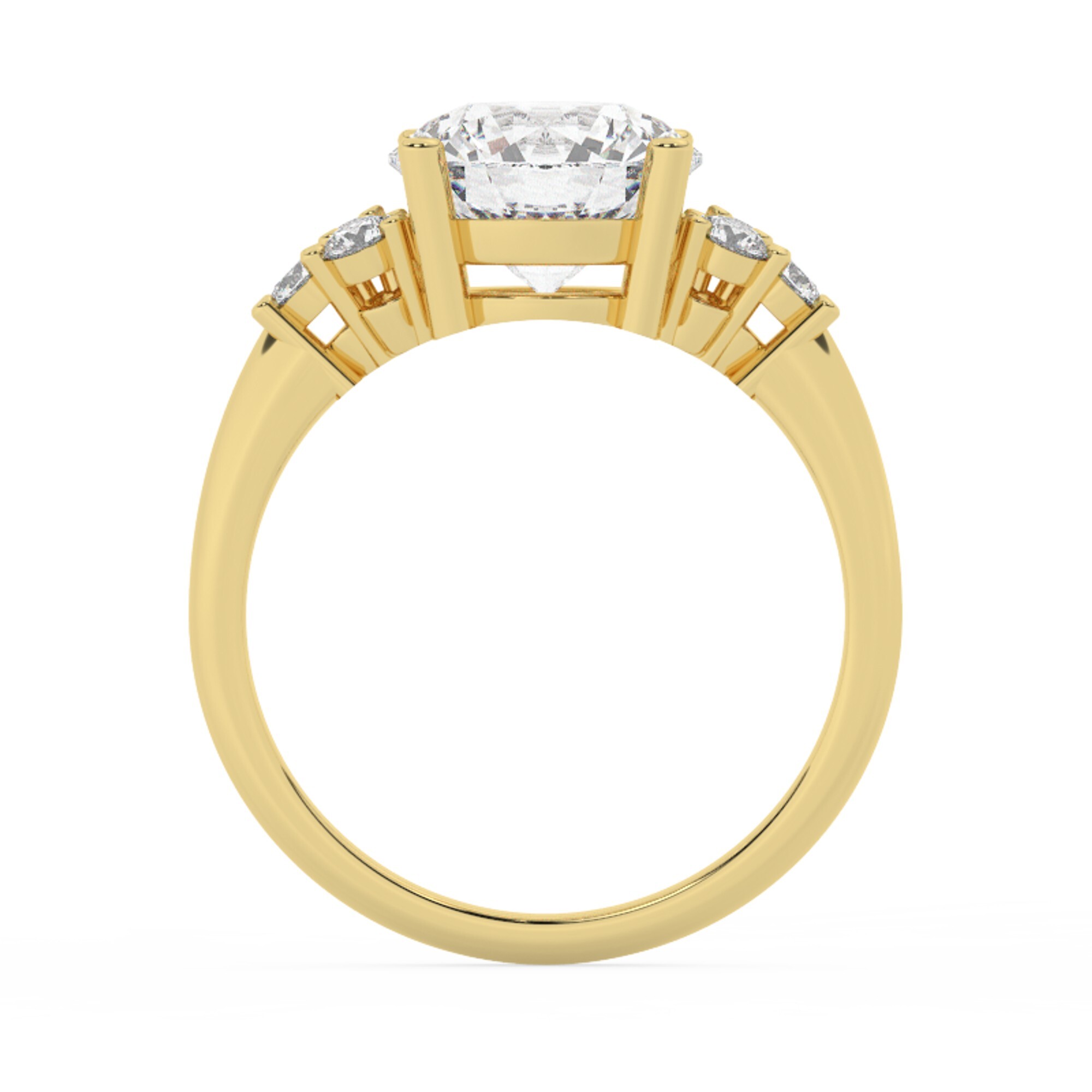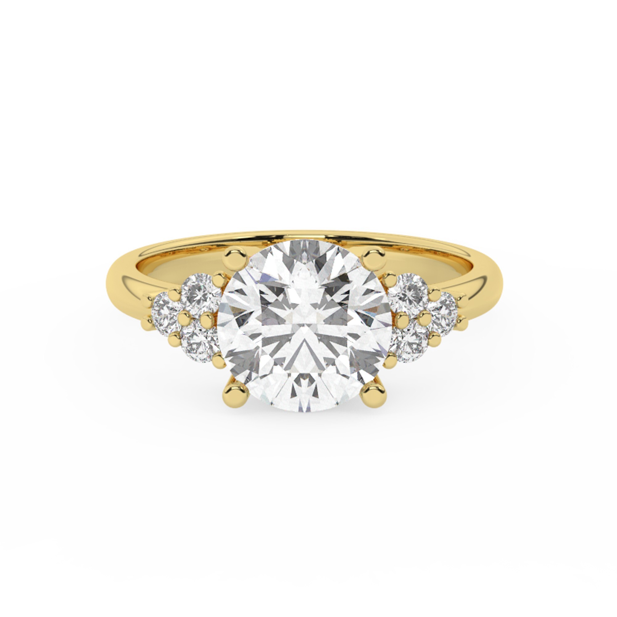 טבעת אירוסין סוליטר וזירקונים בצדדים דגם 50041 זהב צהוב 14 קראט במרכז זירקוניה 4 קראט בחיתוך עגול מסביב ובצדדים זירקונים בחיתוך עגול