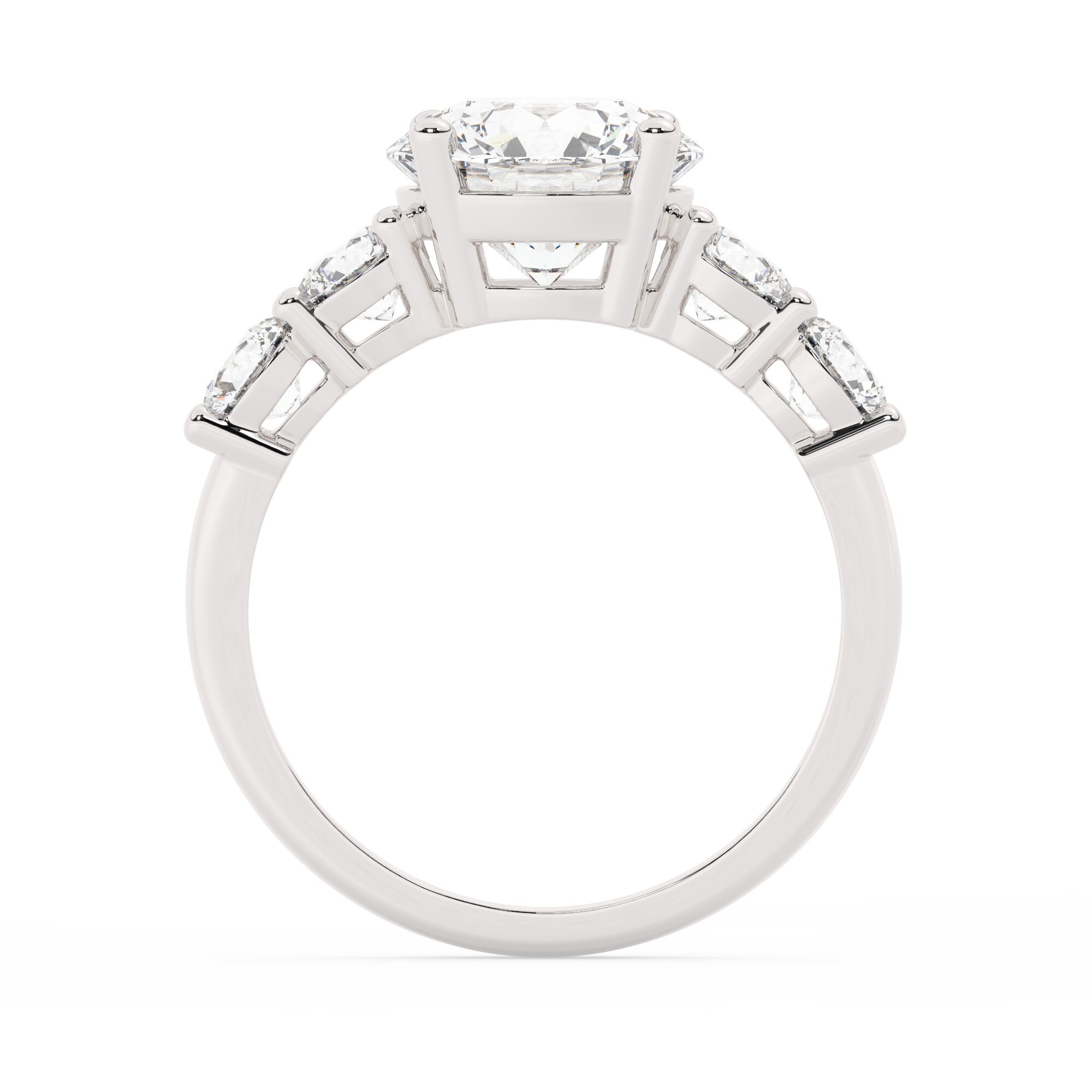 לאבן המרכזית מתלווים 4 אבנים נוספות של זירקוניה, גם הן בעיצוב עגול עם אף הן צבע D ודרגה VVS1, מה שמבטיח שהטבעת לא רק תבריק אלא