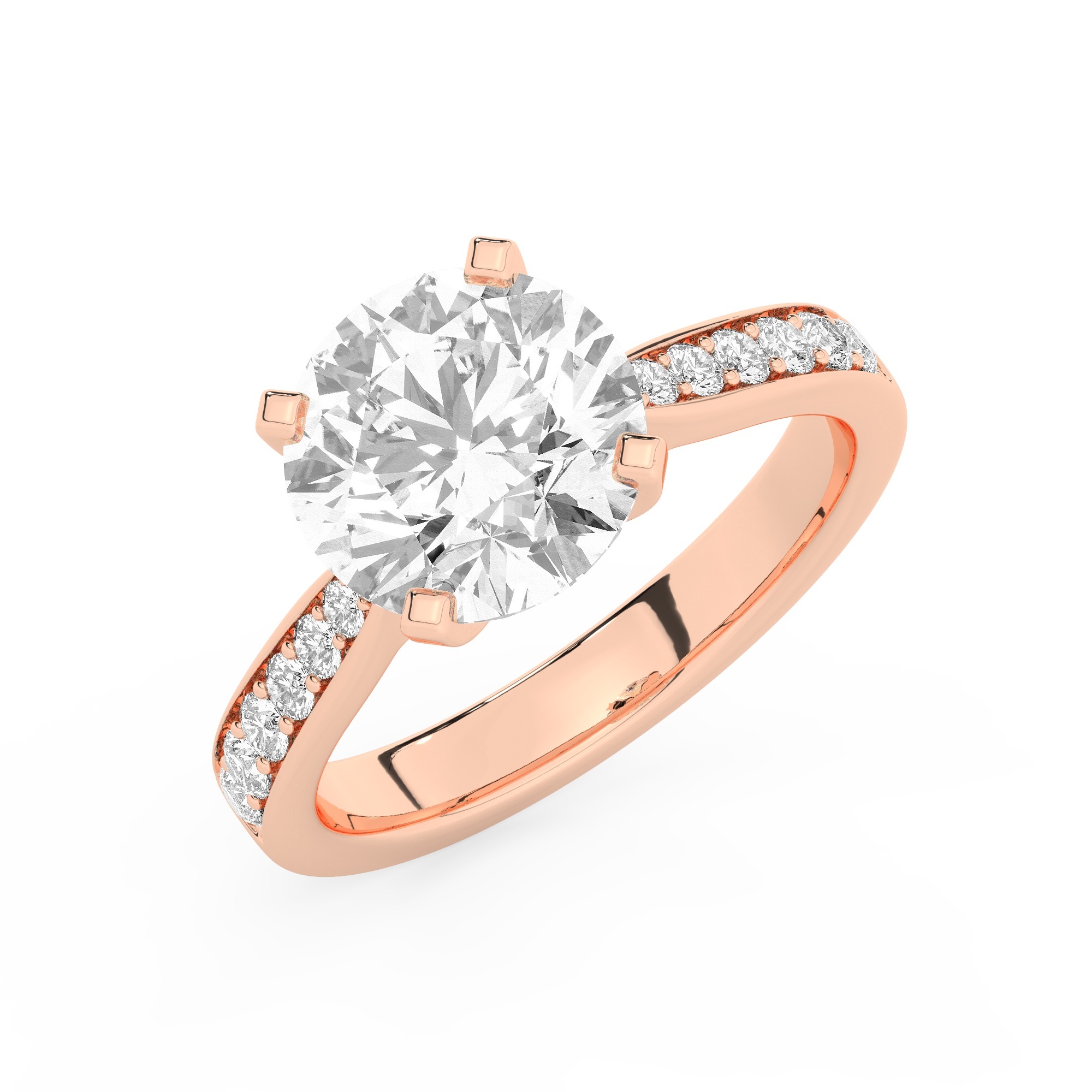טבעת אירוסין סוליטר וזירקונים בצדדים דגם 50017 זהב אדום רוזגולד 14 קראט במרכז זירקוניה 5 קראט בחיתוך עגול מסביב ובצדדים זירקונים בחיתוך עגול