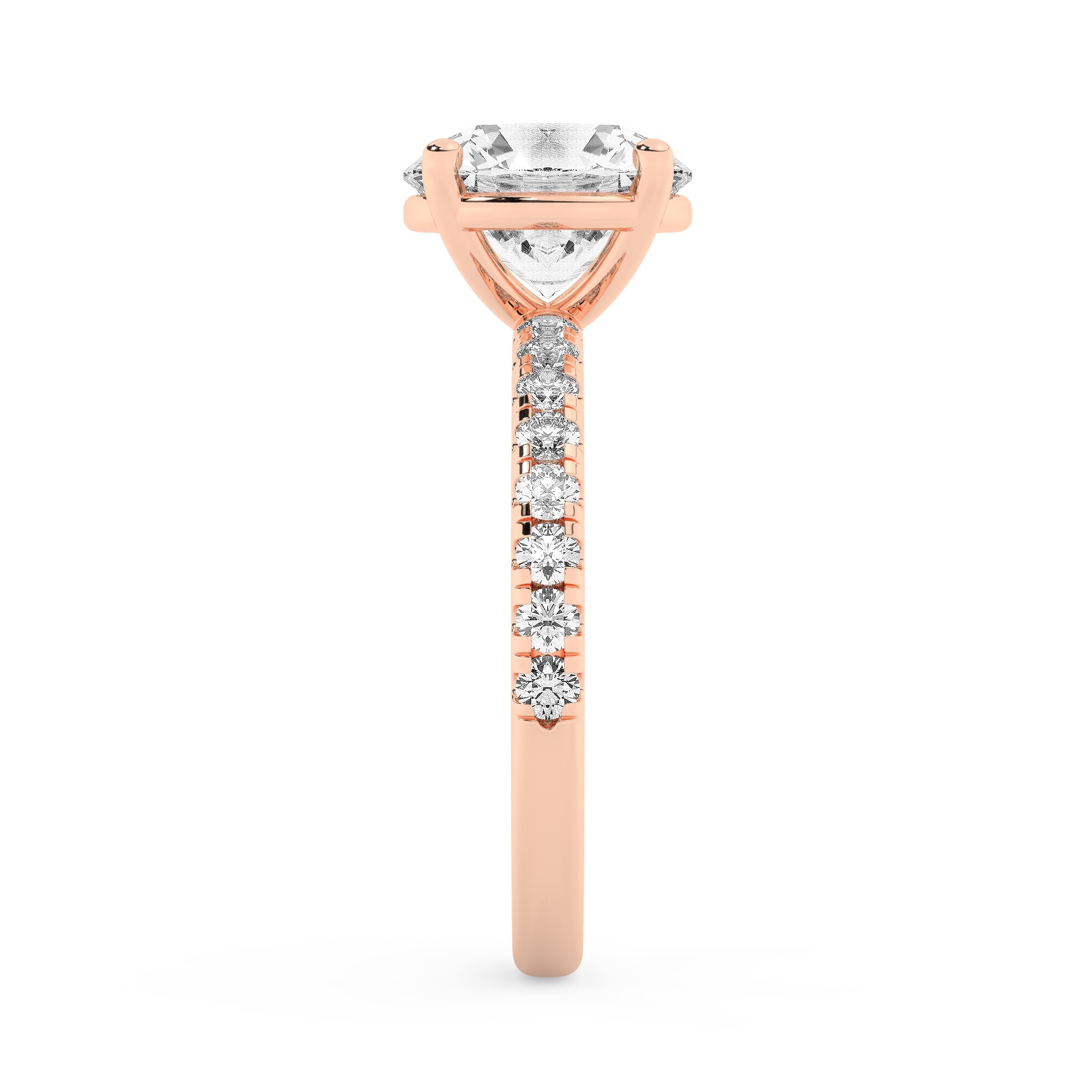 טבעת אירוסין סוליטר וזירקונים בצדדים דגם 50037 זהב אדום רוזגולד 14 קראט במרכז זירקוניה 5 קראט בחיתוך עגול מסביב ובצדדים זירקונים בחיתוך עגול