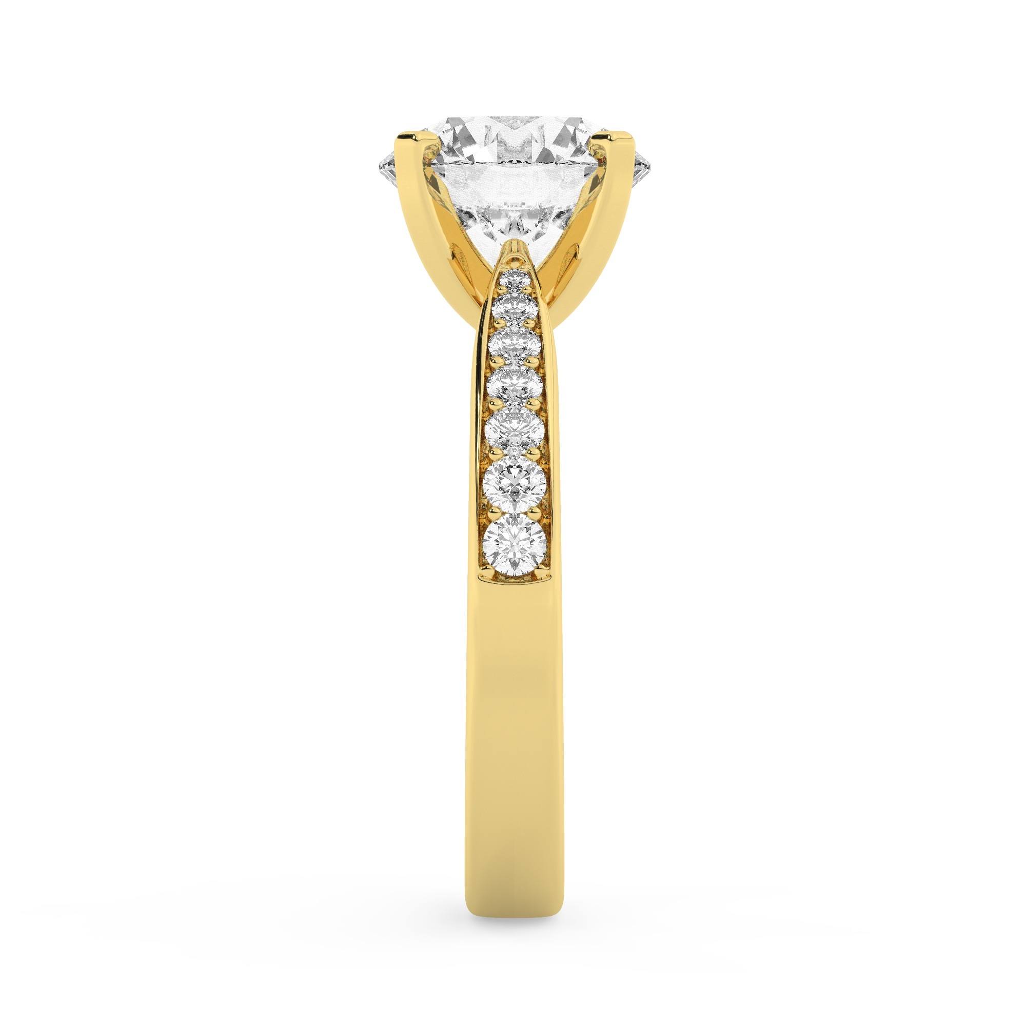 טבעת זו לא רק מכילה אבן מרכזית מרהיבה, אלא גם 14 אבנים צדיות – כל אחת במשקל של 0.15 קראט, המוסיפות זוהר וגוון לכל כיוון. החיבור בין האבן המרכזית לאבנים הצדיות יוצר הרמוניה מושלמת, ששואבת כל עין בסביבה. כל אבן צדית גם היא בעלת צורה עגולה, צבע D ומוקפת בניקיון גבוה, כך שניתן לראות את הברק וההדר מכל זווית.