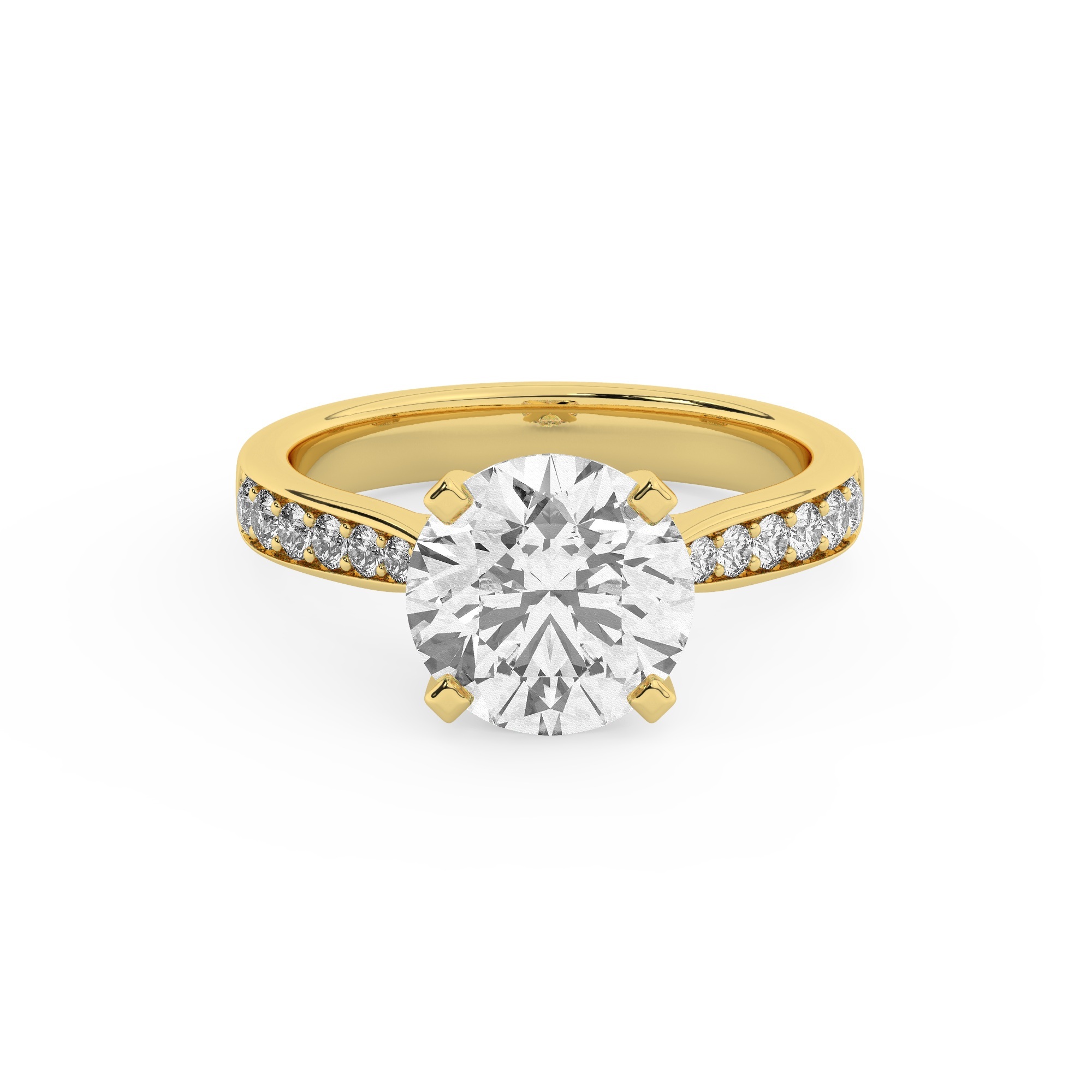 טבעת אירוסין סוליטר וזירקונים בצדדים דגם 50017 זהב צהוב 14 קראט במרכז זירקוניה 5 קראט בחיתוך עגול מסביב ובצדדים זירקונים בחיתוך עגול