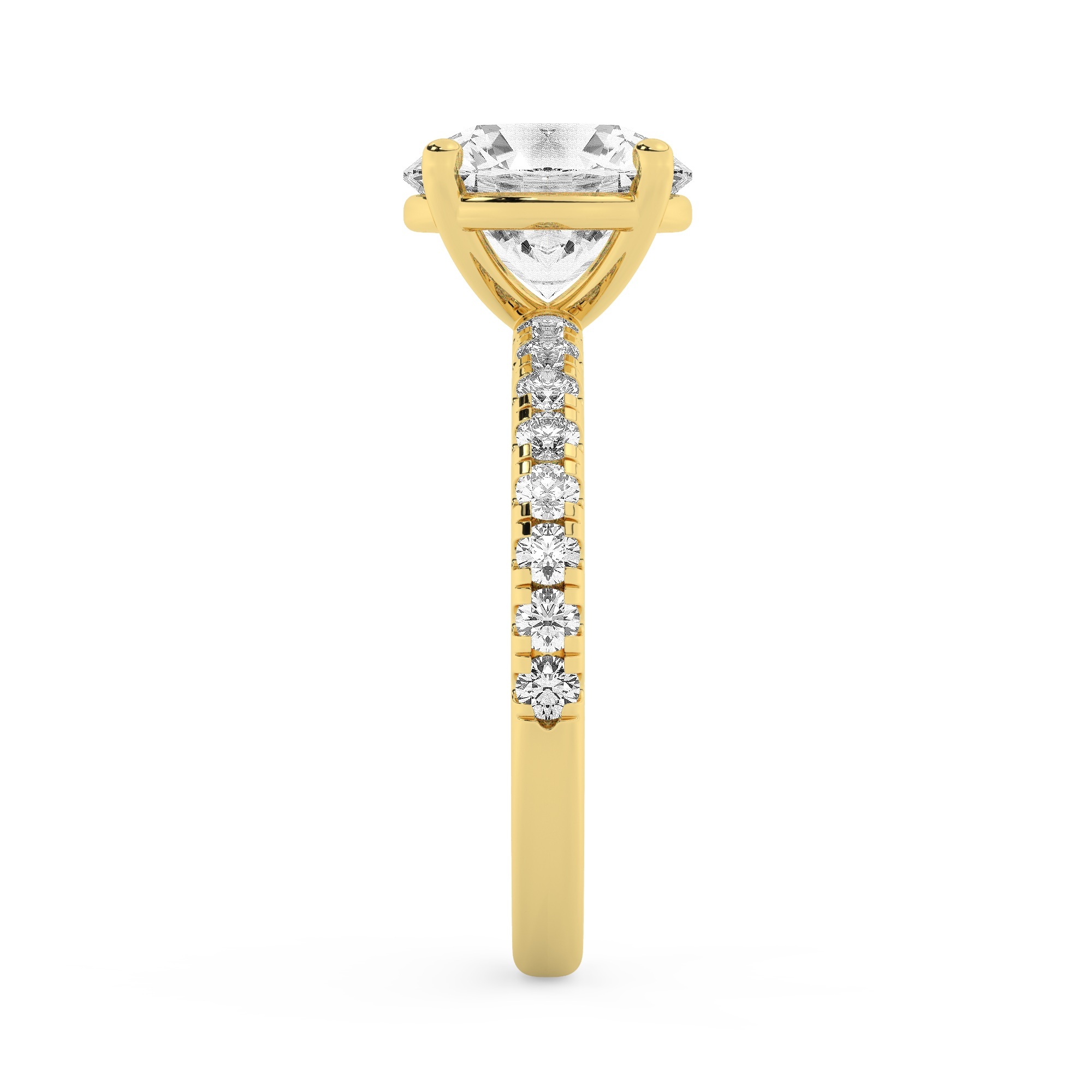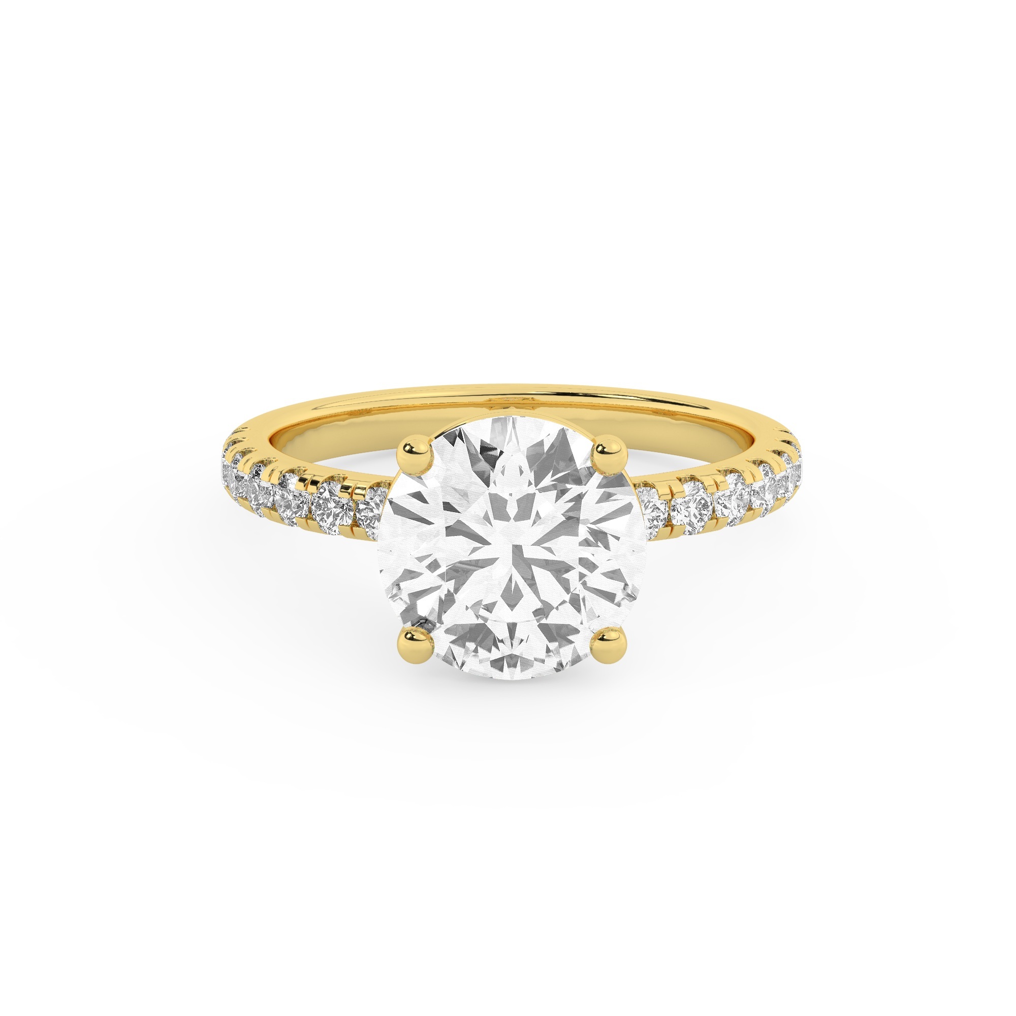 טבעת אירוסין סוליטר וזירקונים בצדדים דגם 50037 זהב צהוב 14 קראט במרכז זירקוניה 5 קראט בחיתוך עגול מסביב ובצדדים זירקונים בחיתוך עגול