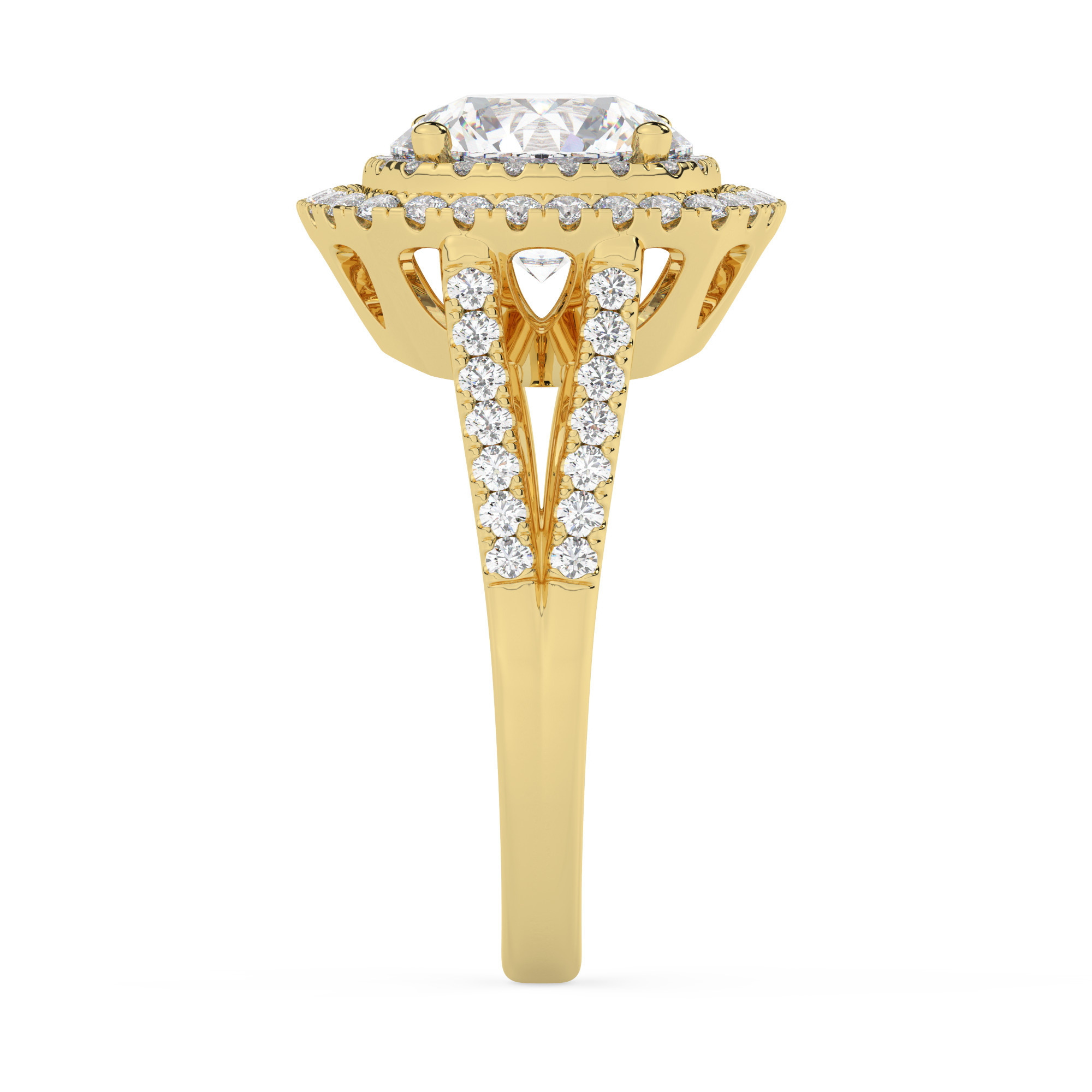 50% הנחהטבעת אירוסין היילו דגם ליטל זהב צהוב 14 קראט במרכז אבן מעבדה מוסונייט 1 קראט מסביבה ובצדדים שורה של אבני מעבדה עם תעודה גמולוגית בינלאומית GRA