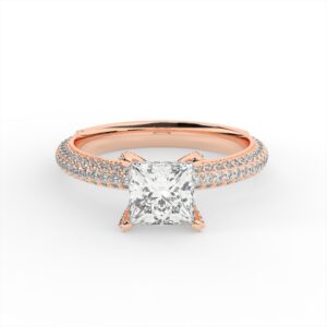 50% הנחהטבעת אירוסין סוליטר ויהלומים בצדדים דגם 50012 זהב אדום רוזגולד 14 קראט במרכז זירקוניה 2 קראט בחיתוך פרינסס מסביב ובצדדים זירקונים בחיתוך עגול