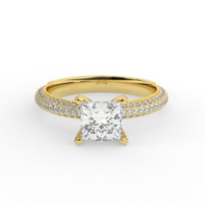 50% הנחהטבעת אירוסין סוליטר ויהלומים בצדדים דגם 50017 זהב צהוב 14 קראט במרכז יהלום מעבדה 0.50 קראט בחיתוך פרינסס עם תעודה גמולוגית מסביב ובצדדים יהלומי מעבדה במשקל כולל של 0.15 קראט בחיתוך עגול